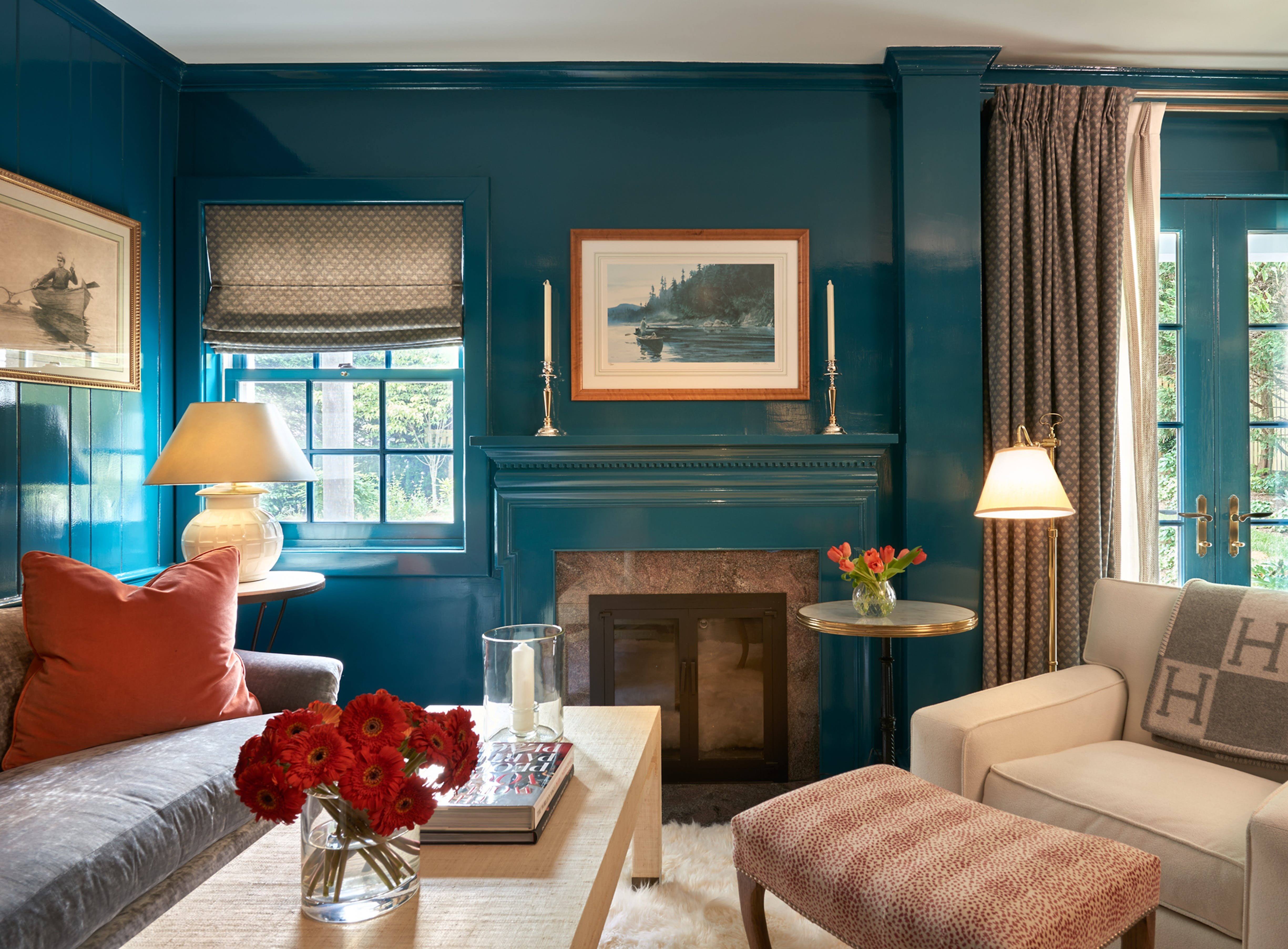 Гостиная с бирюзовыми стенами