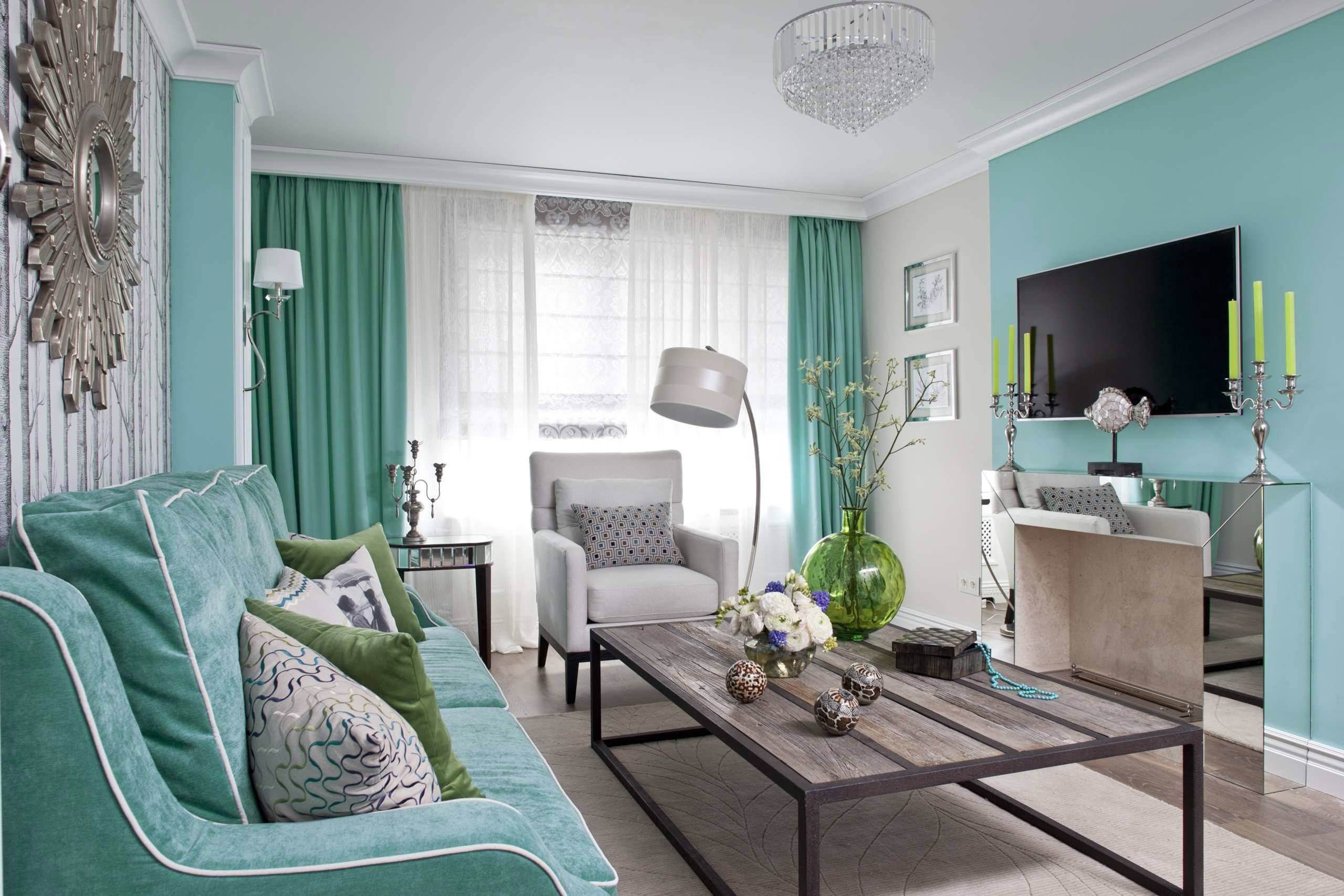 Зал в бирюзовом цвете в квартире