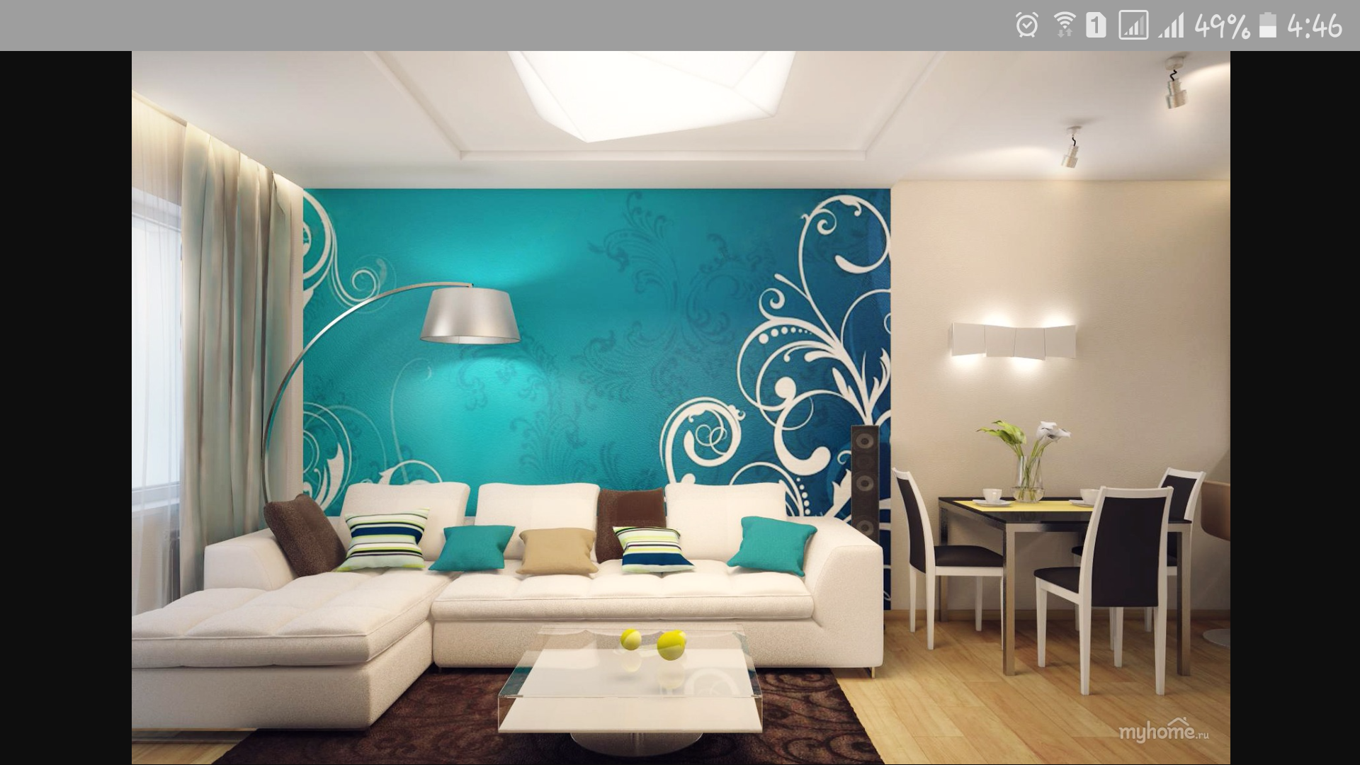 Бирюза в интерьере гостиной