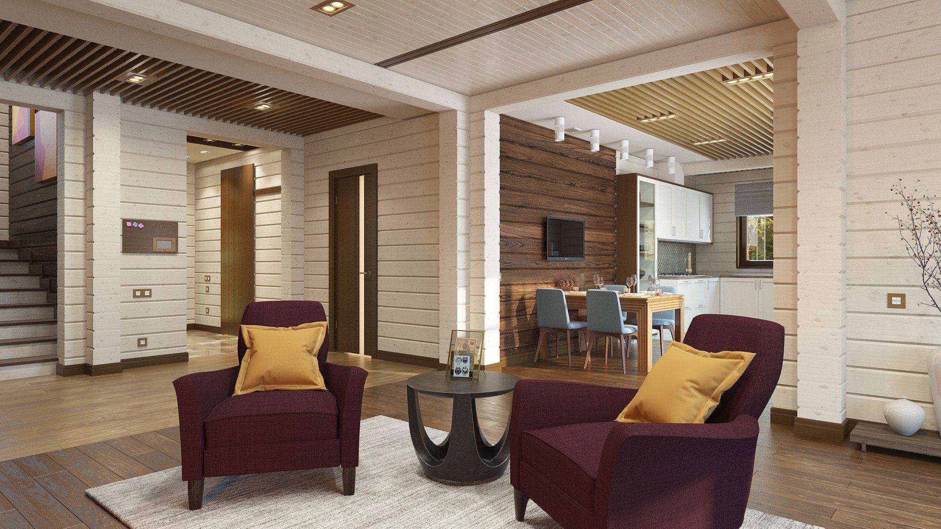 Интерьеры домов из клееного бруса
