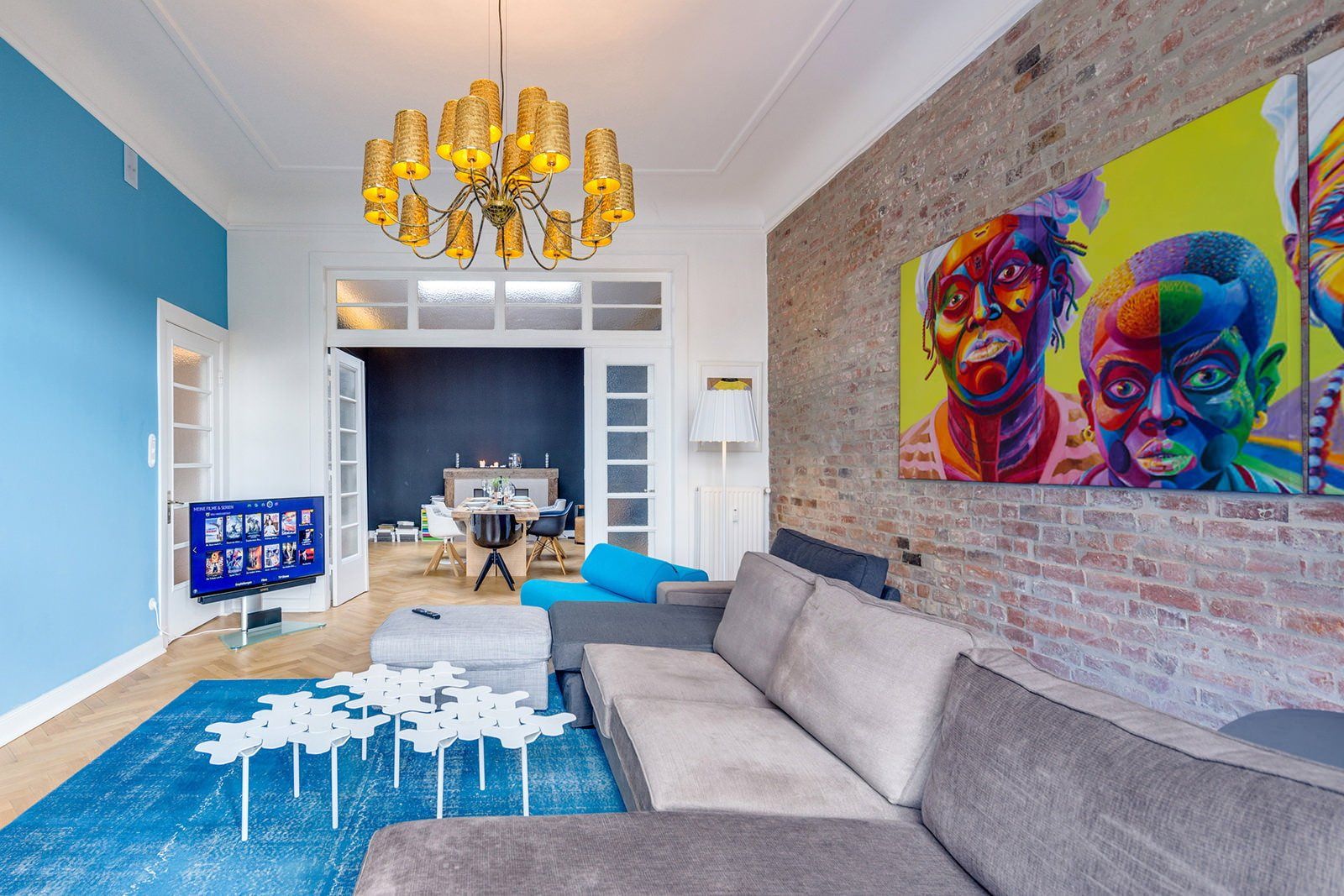 Интерьер гостиной с яркими акцентами