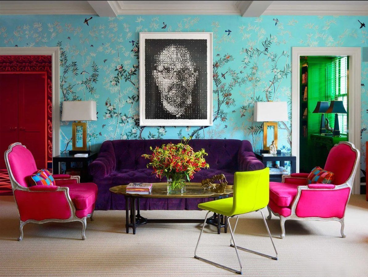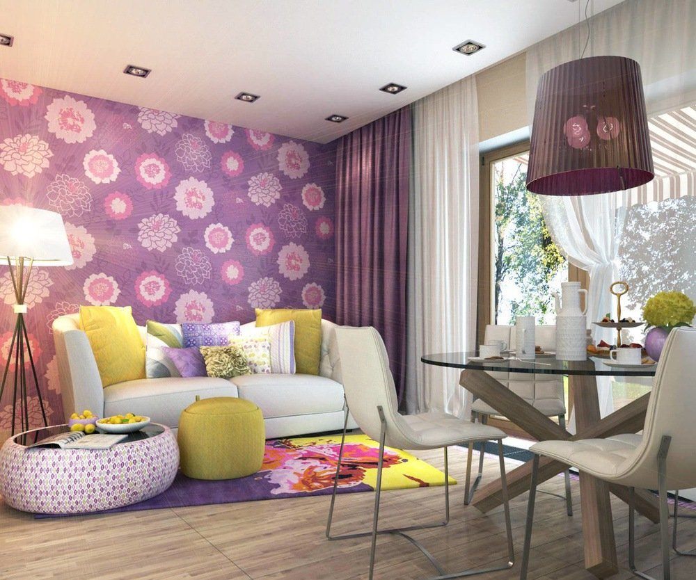 Яркие обои в интерьере гостиной