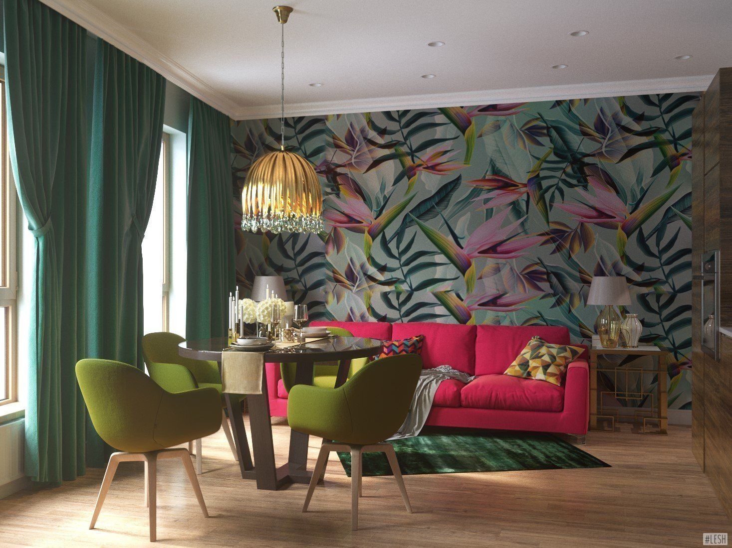 Яркие шторы в интерьере