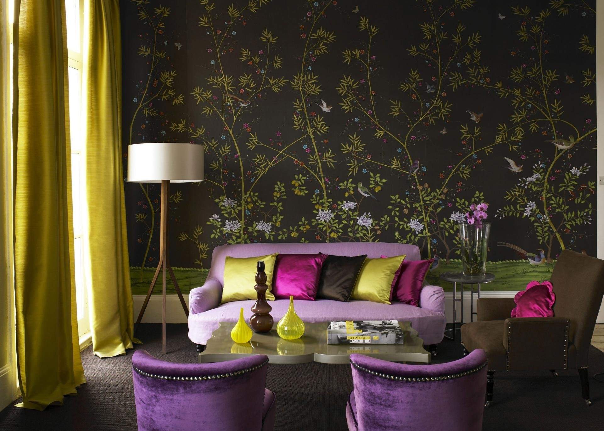 Яркие обои в гостиной