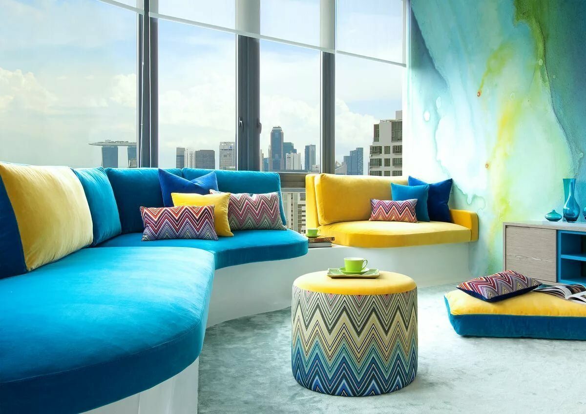 Сочетание ярких цветов в интерьере