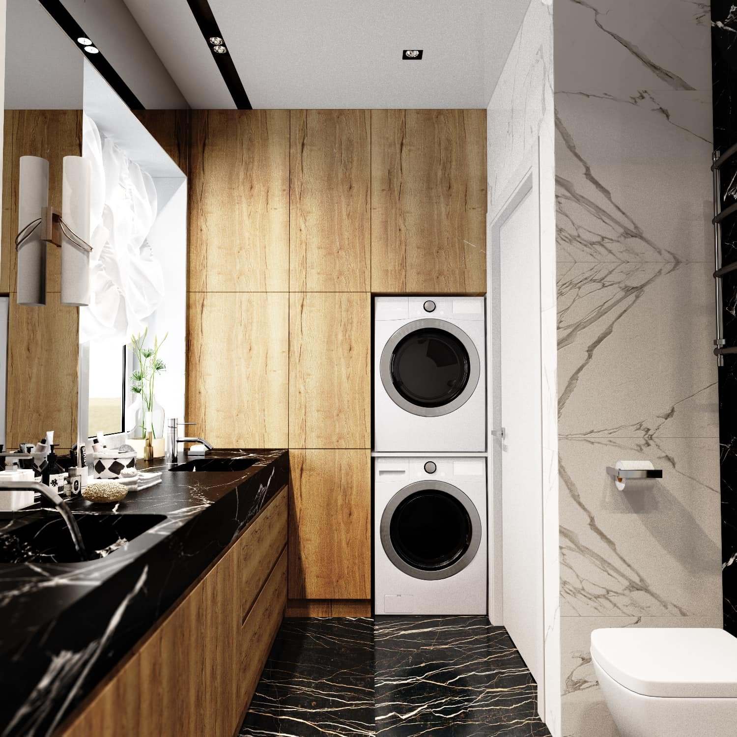 Интерьер ванной с стиральной машиной стильный