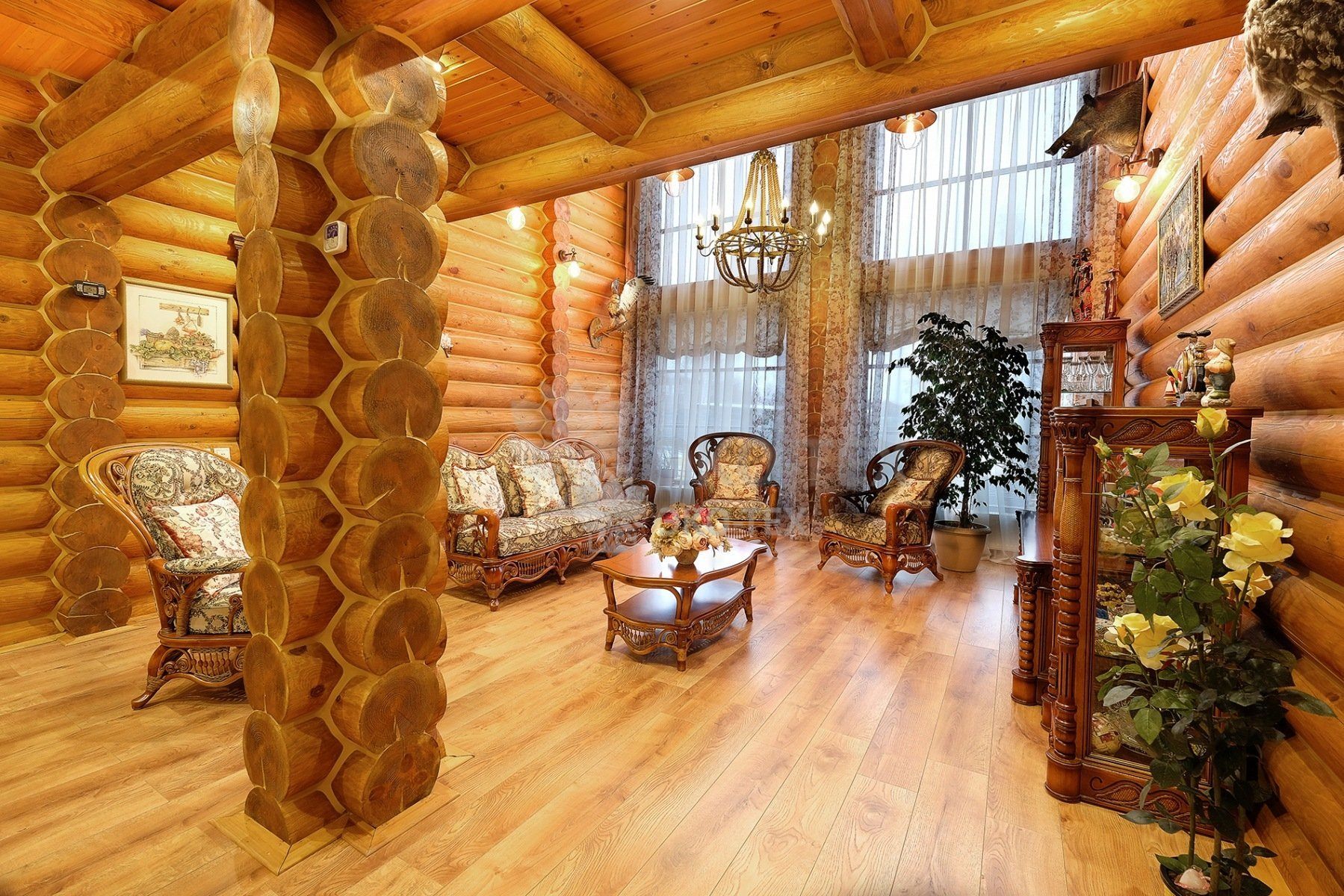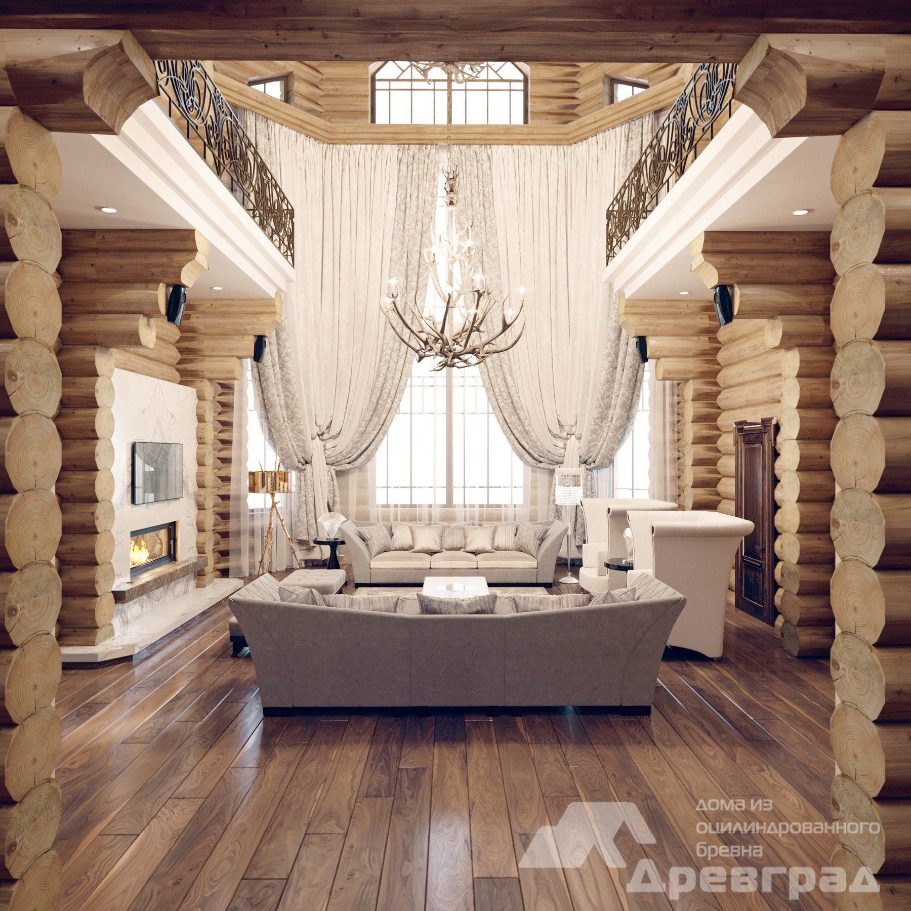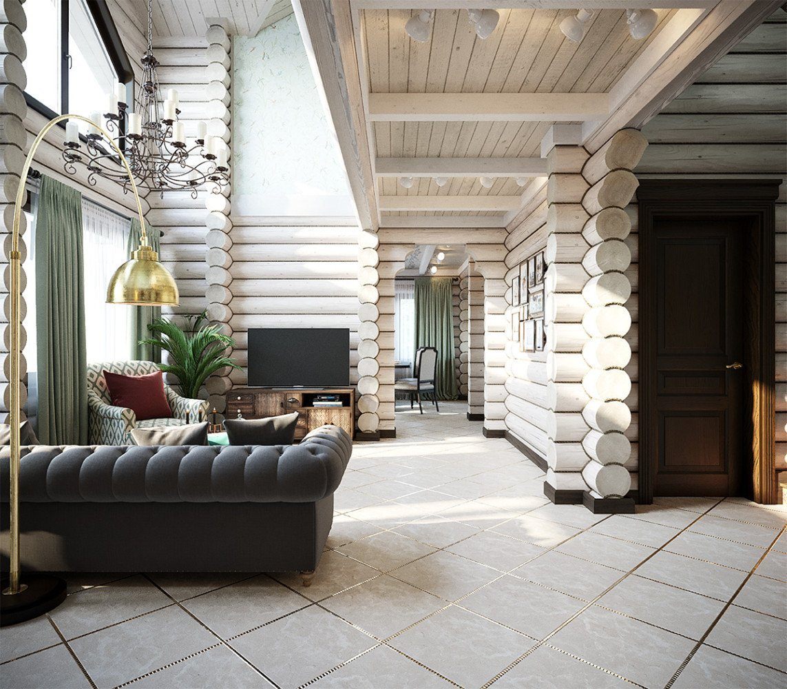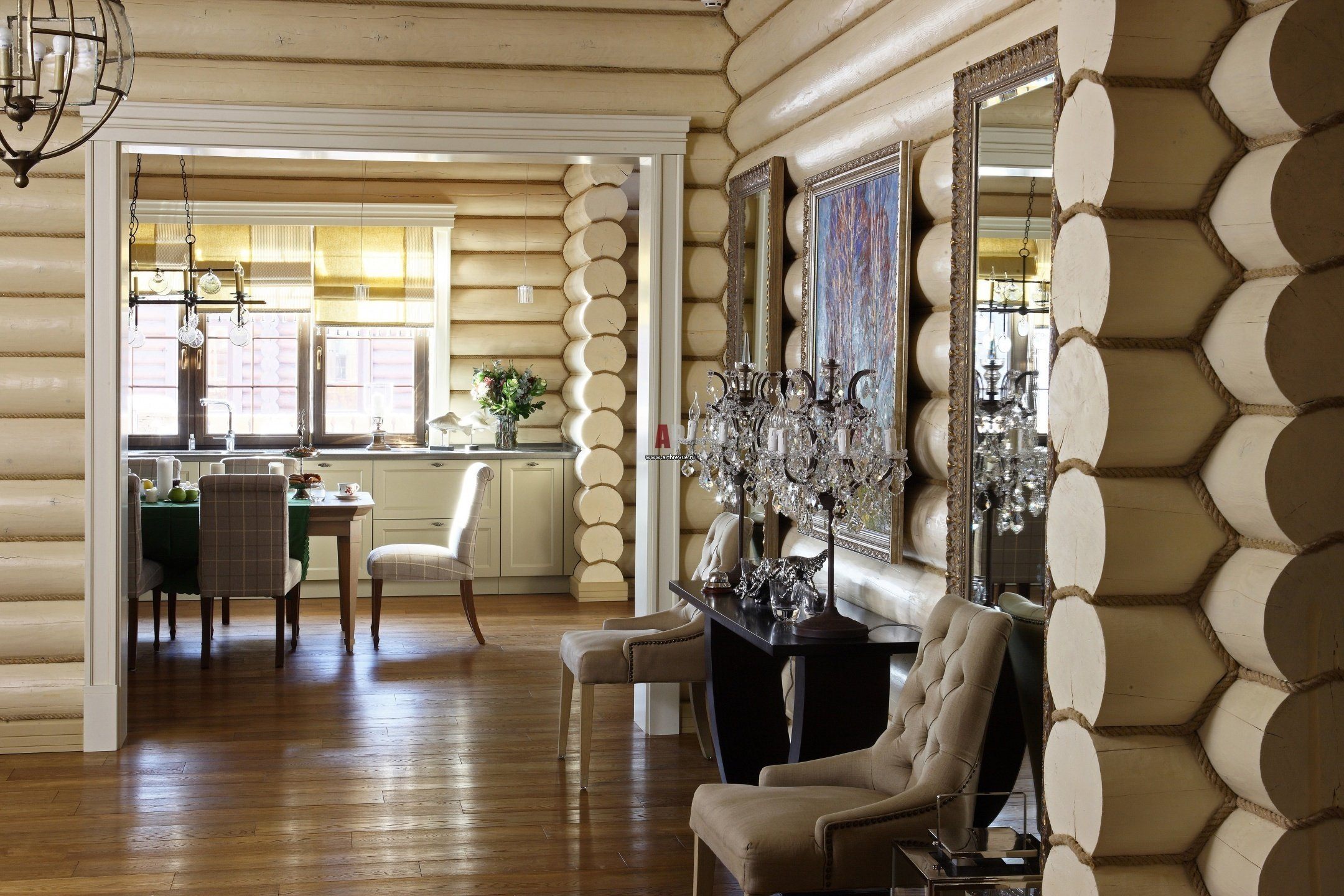 Дом из оцилиндрованного бревна интерьер кухня гостиная
