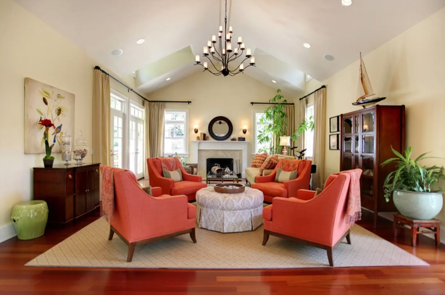 Рыжий пол в интерьере гостиной