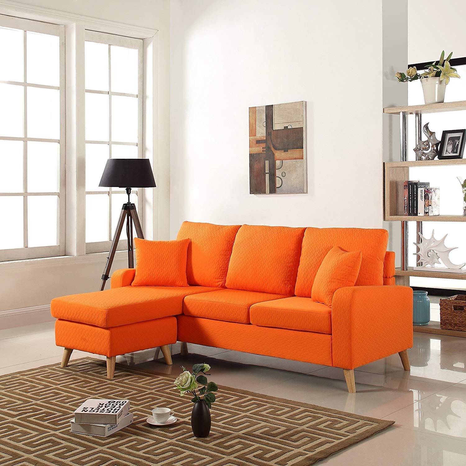 Гостиная в скандинавском стиле с оранжевым акцентом
