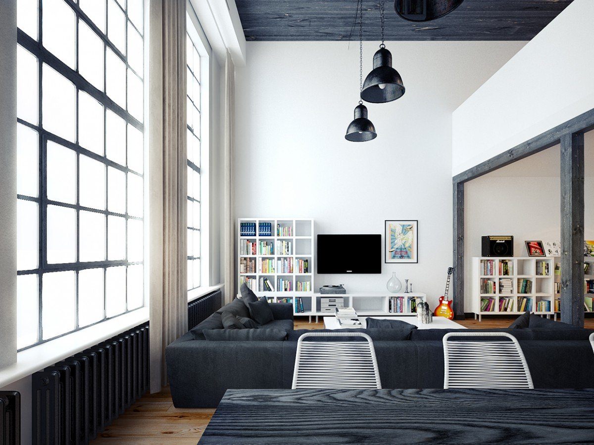 Гостиная лофт белый черный