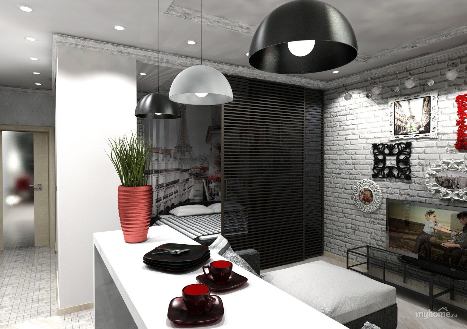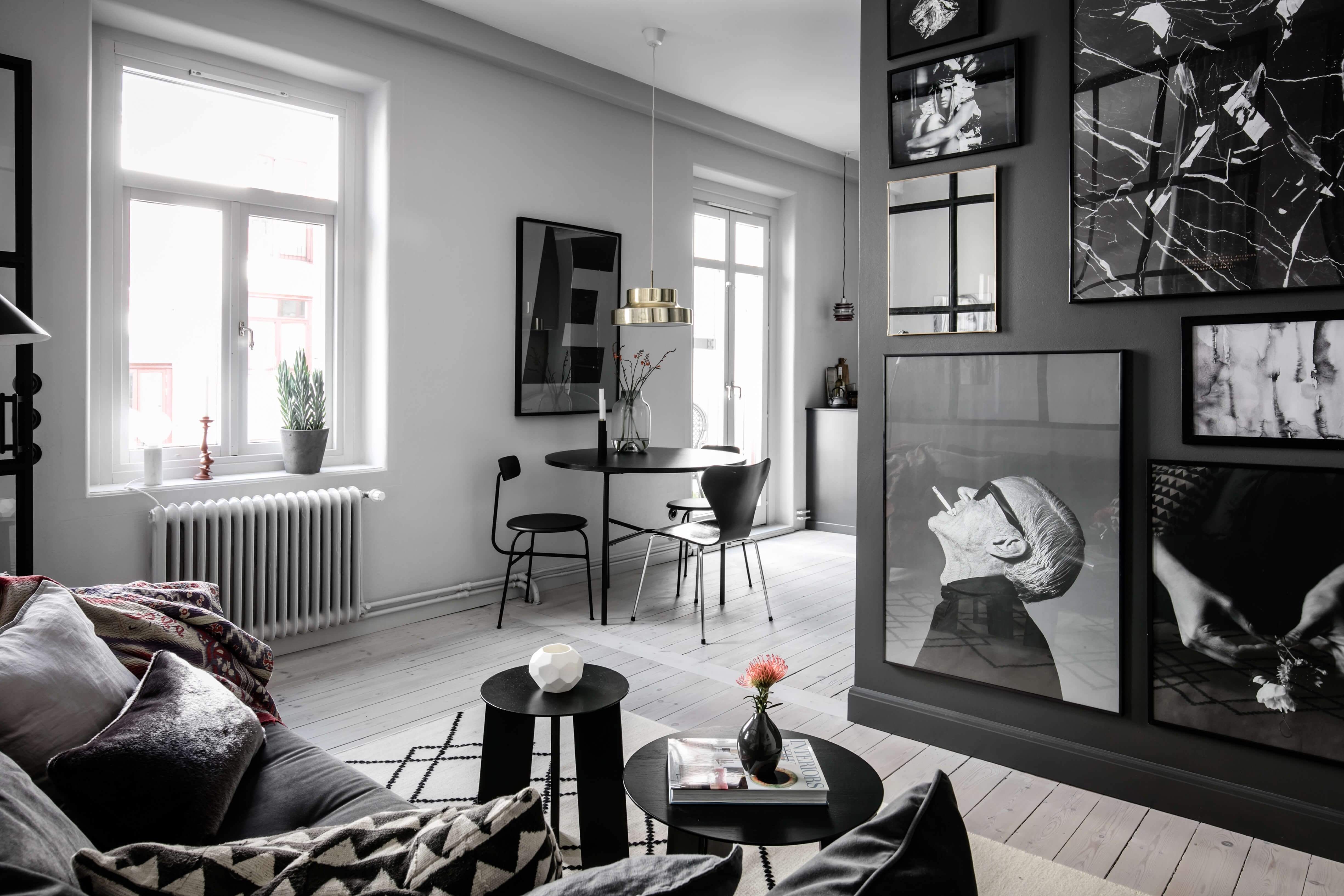 Квартира студия в черно белых тонах
