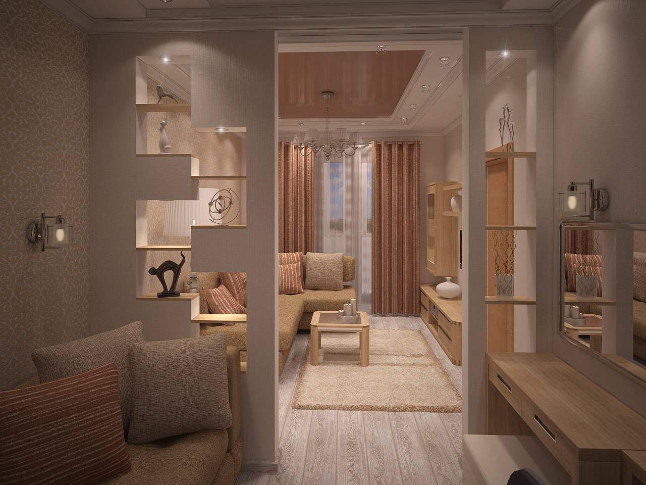 Зонирование гостиной гипсокартонными перегородками