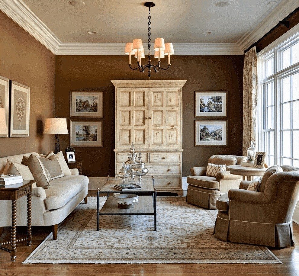 Классическая гостиная в коричневых тонах