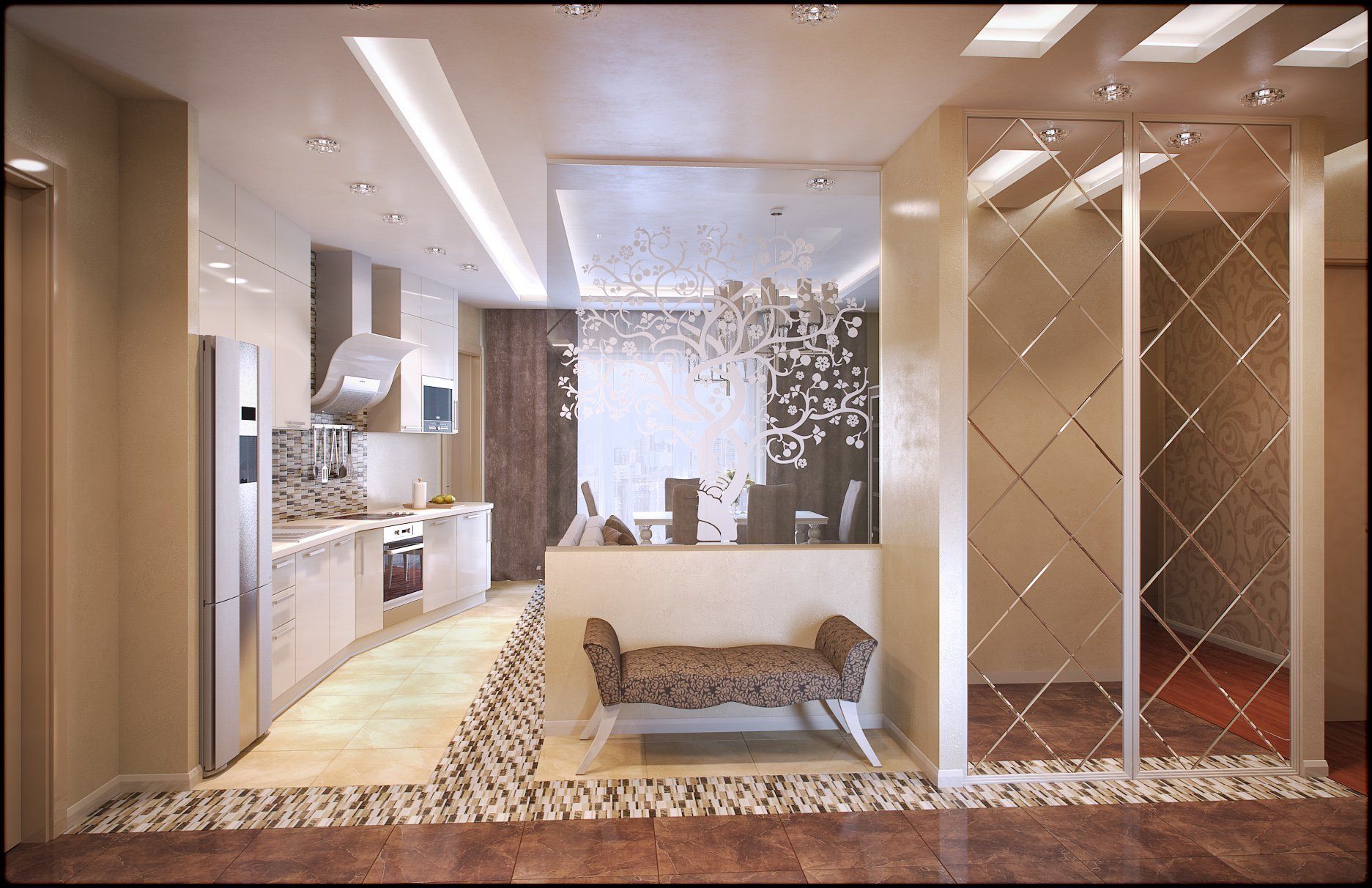 Зонирование прихожая гостиная