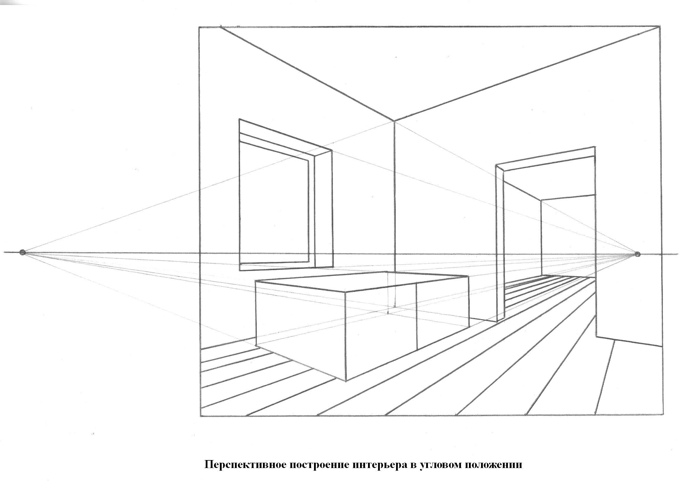 Одноточечная перспектива в интерьере