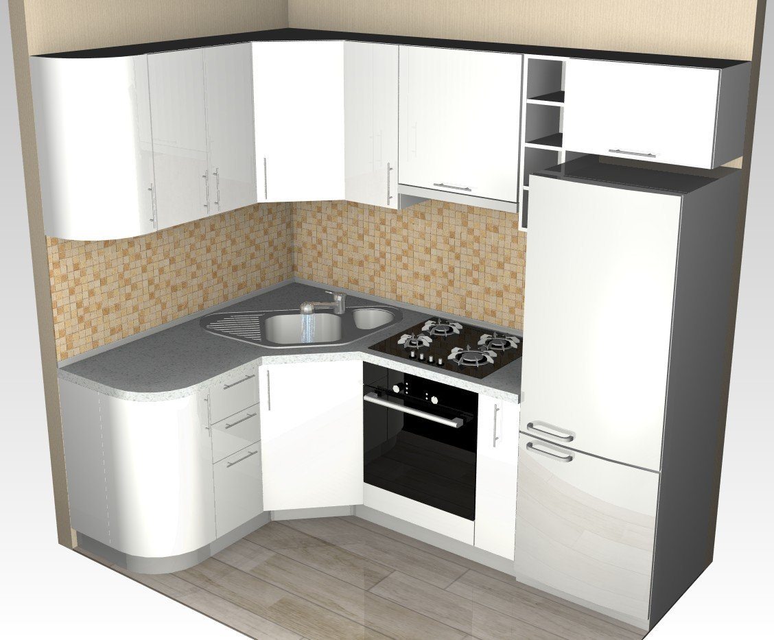 Угловая кухня хрущевка 5кв м с холодильником