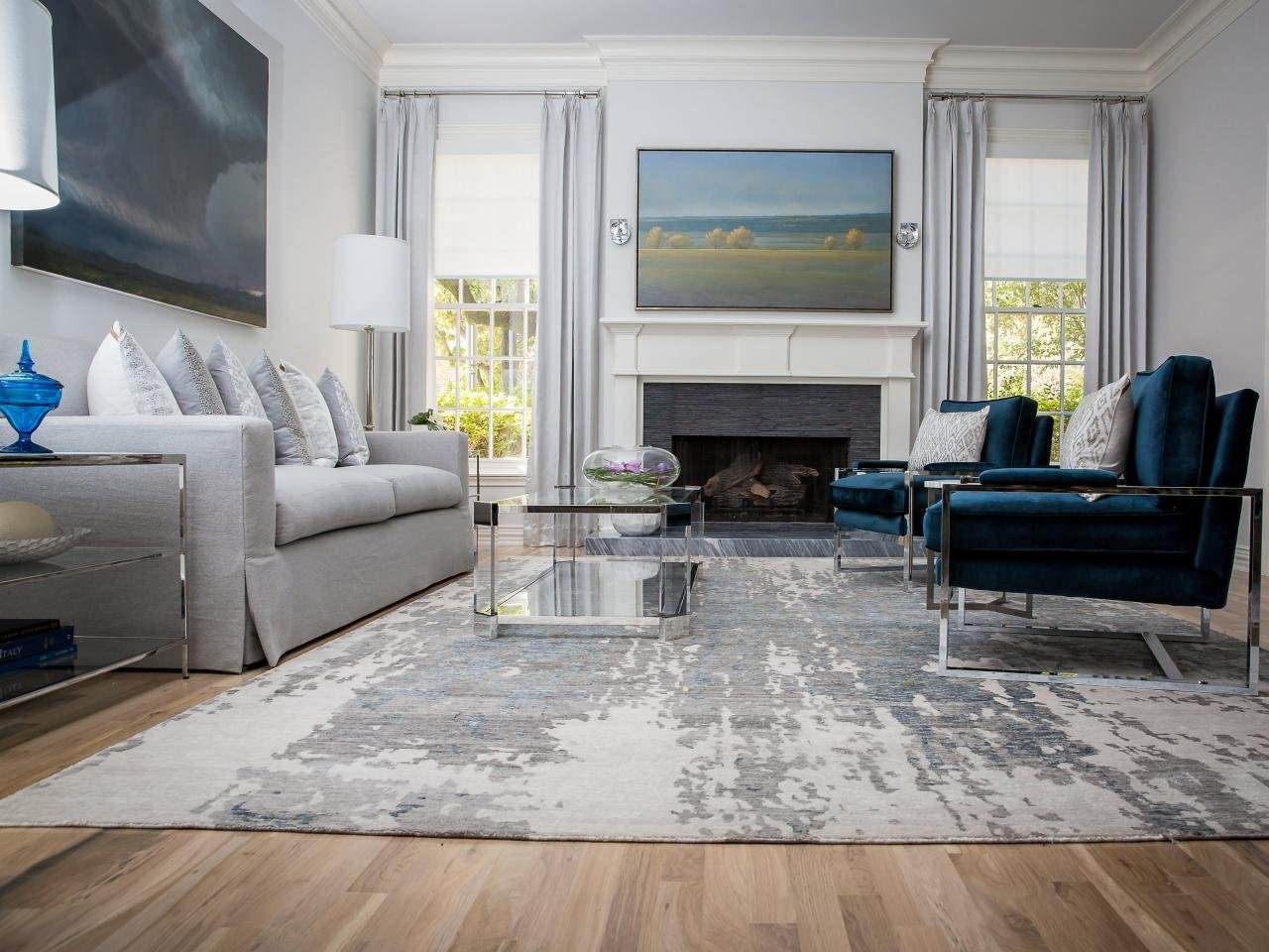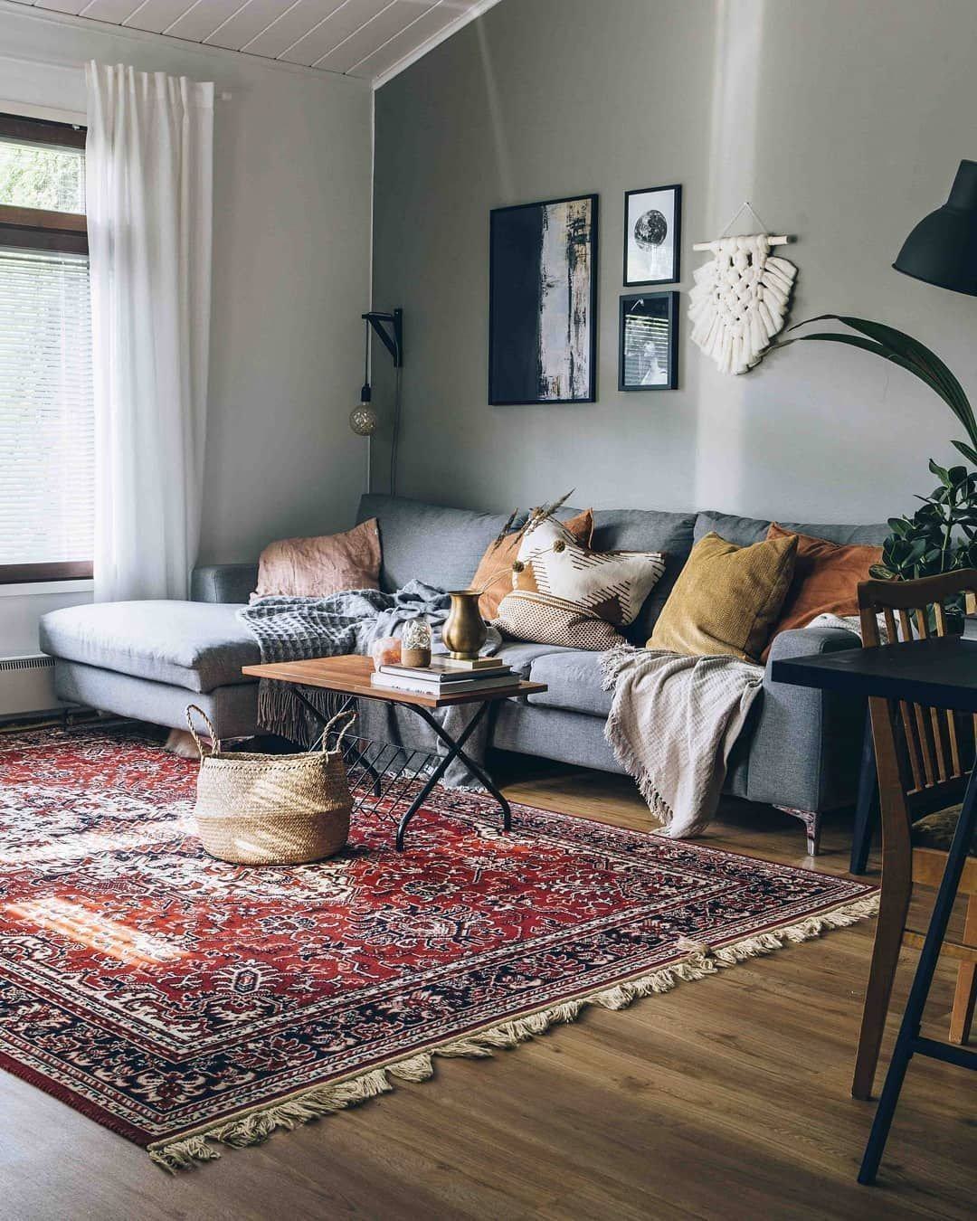 Ковры в интерьере серой гостиной