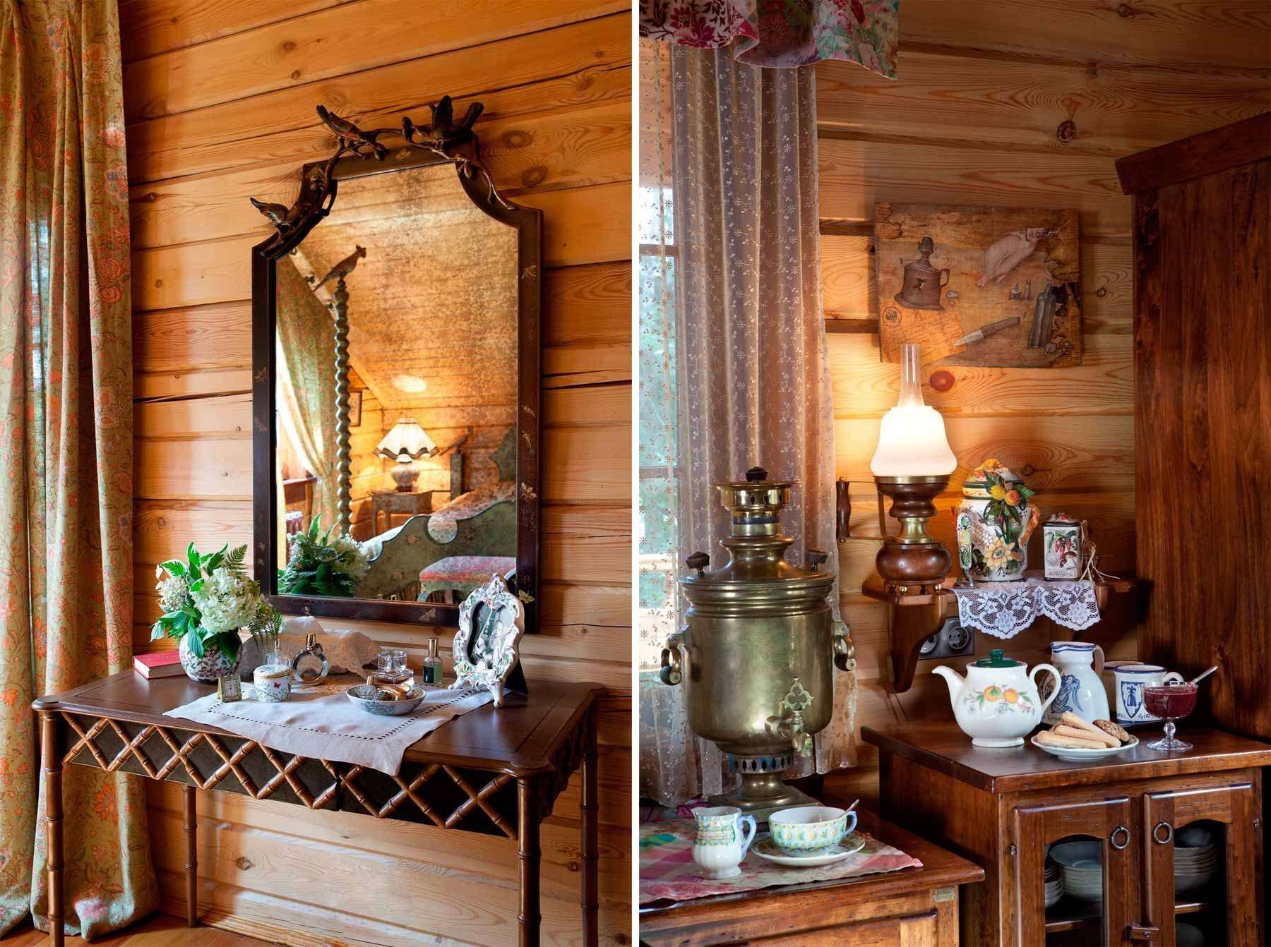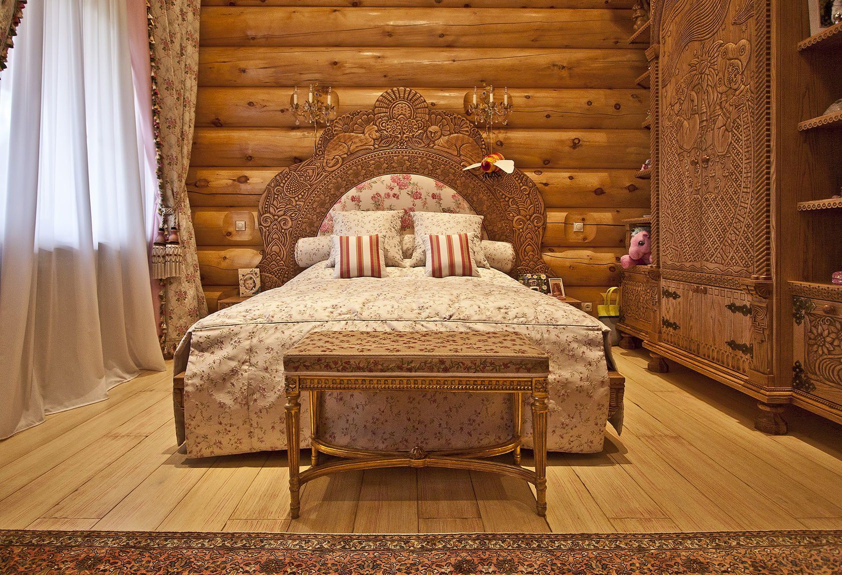 Интерьер в стиле русская усадьба в бревенчатом доме