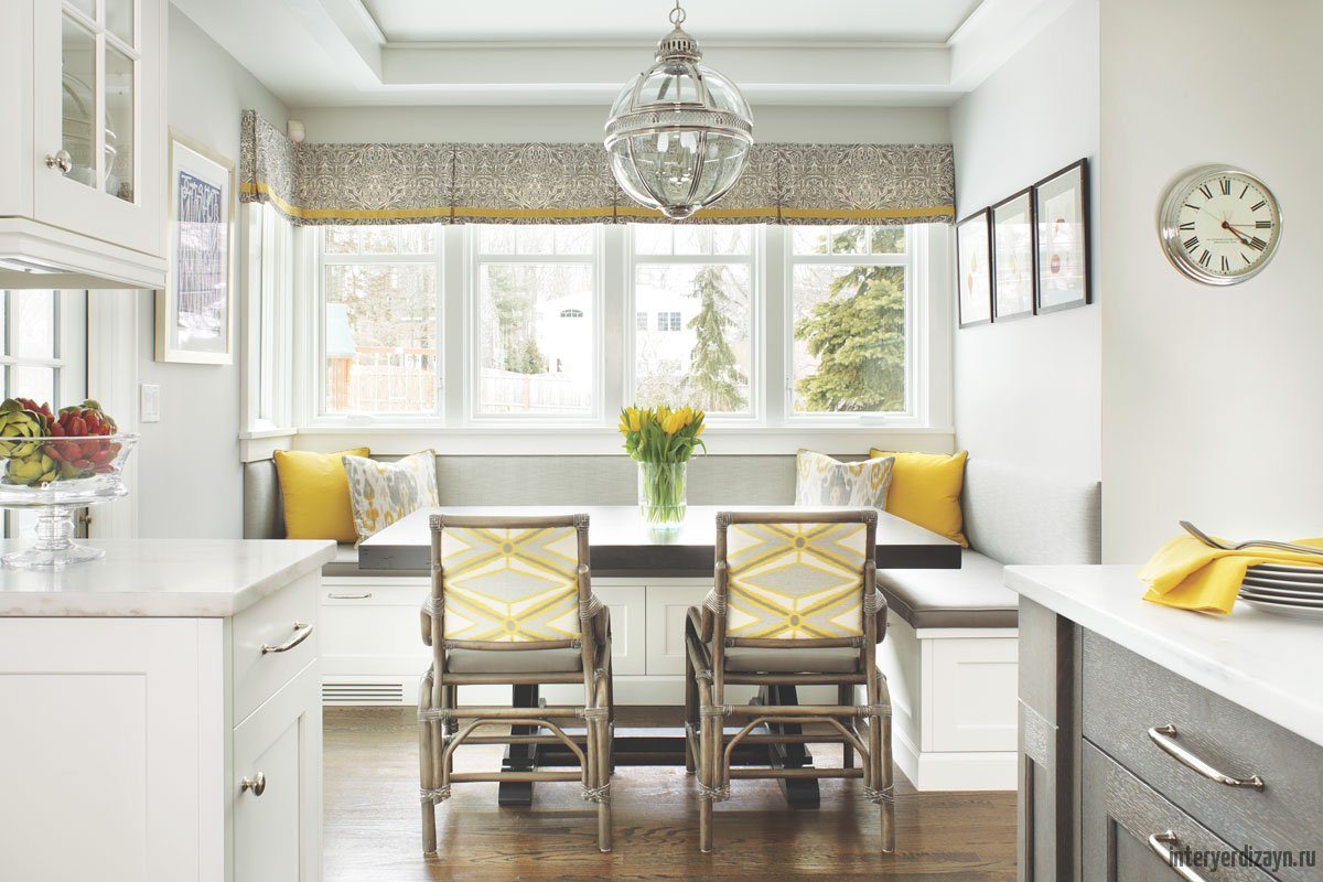 Планировка кухни с обеденной зоной у окна
