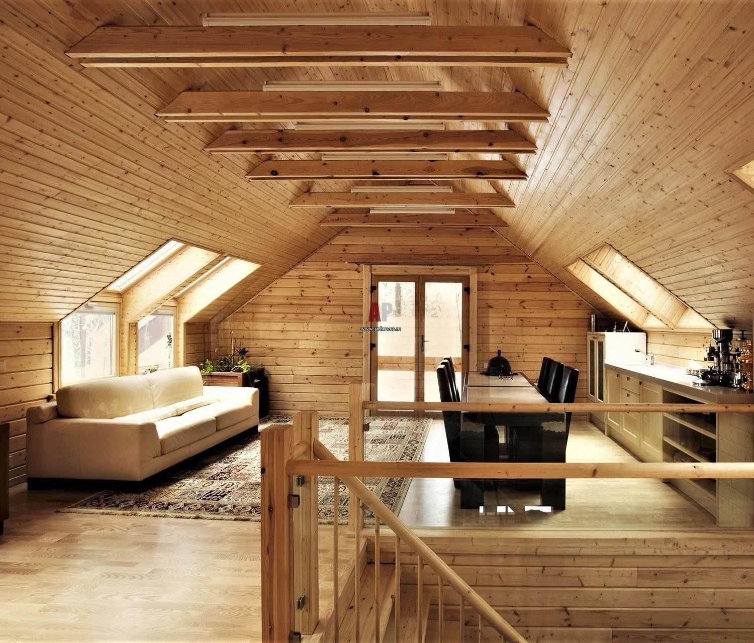 Барнхаус с мансардой интерьер