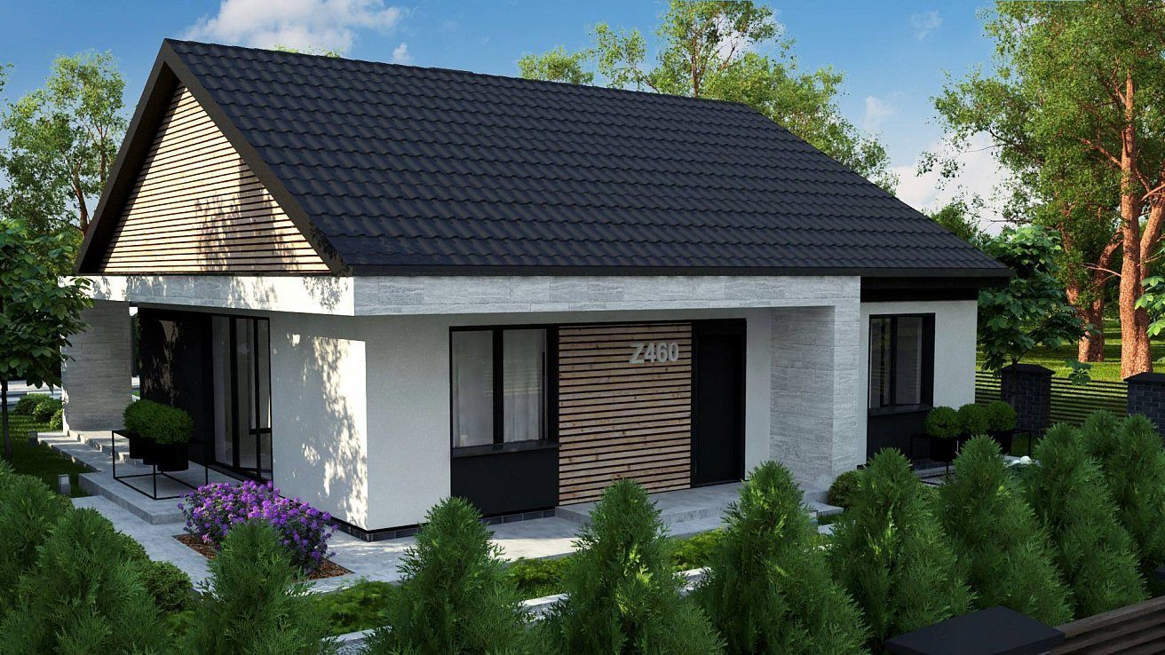 Визуал современного дома с двускатной крышей