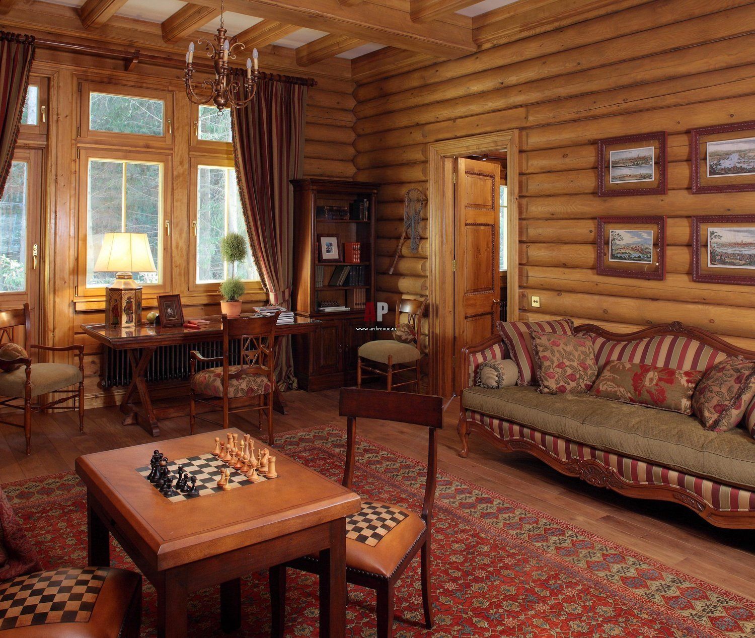 Интерьер в стиле русская усадьба в бревенчатом доме