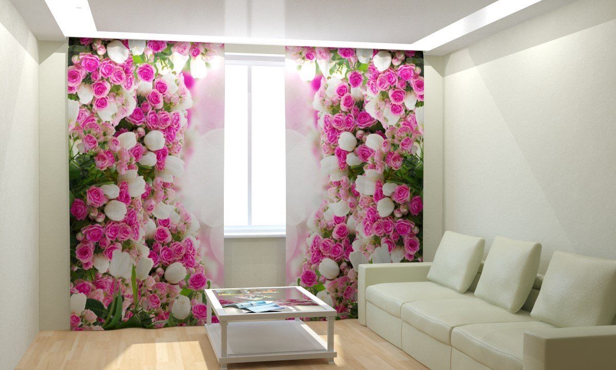 Шторы с розами в интерьере