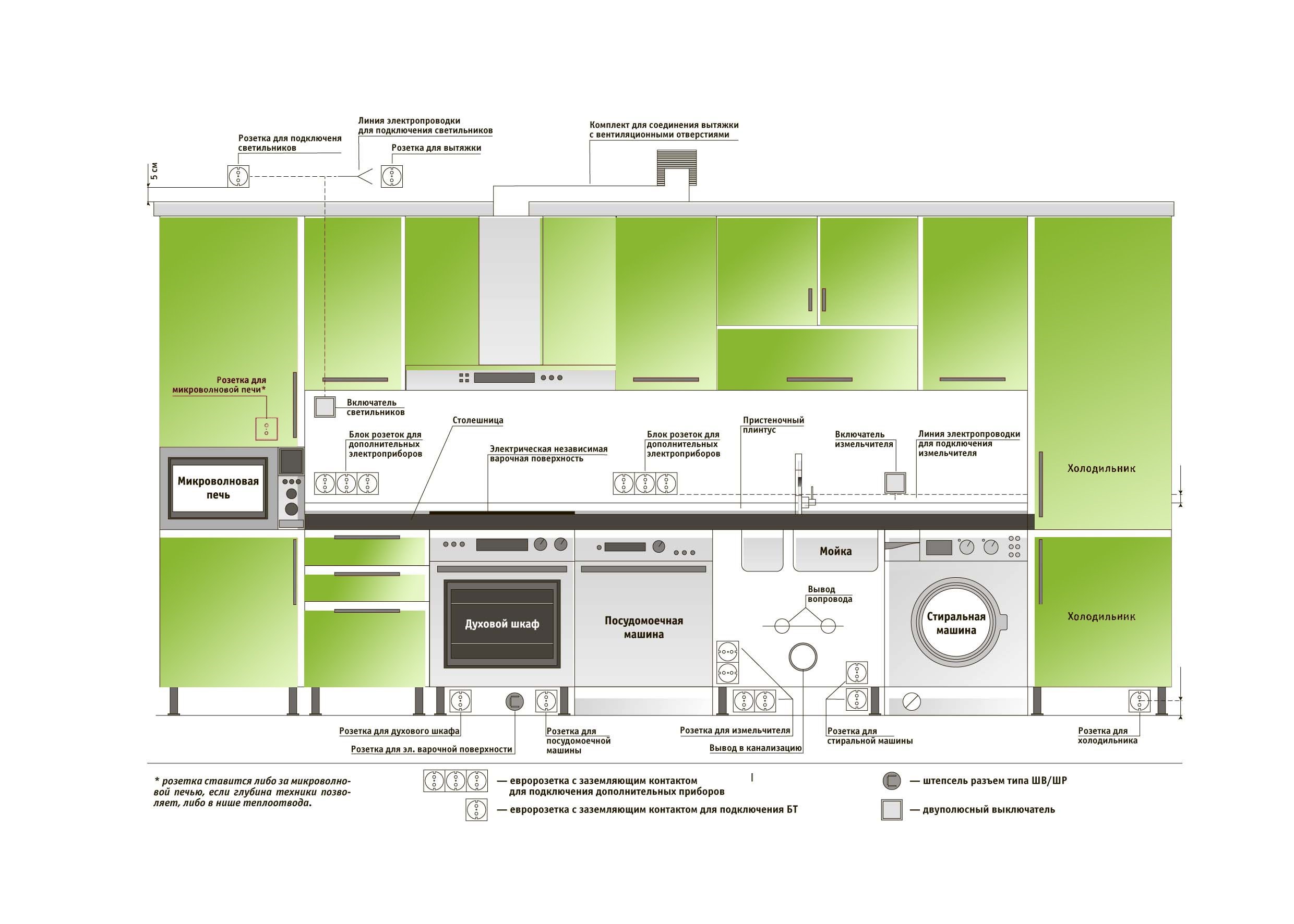 Как установить розетки на кухне под встраиваемую технику для кухни