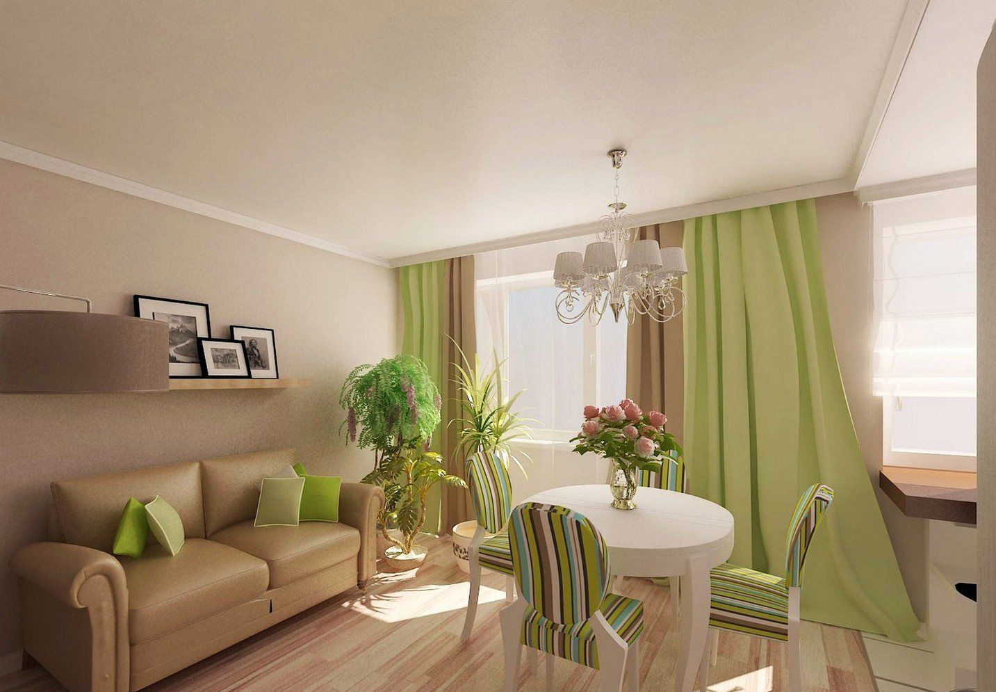 Комната в бежево зеленых тонах