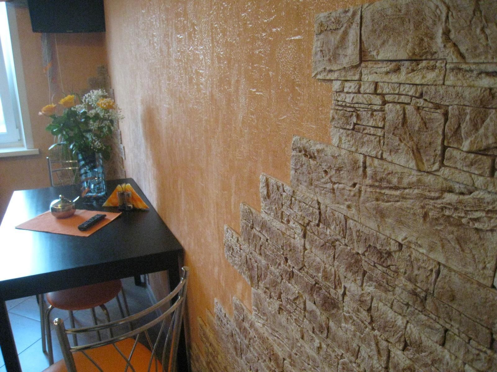 Стены на кухне декоративный камень