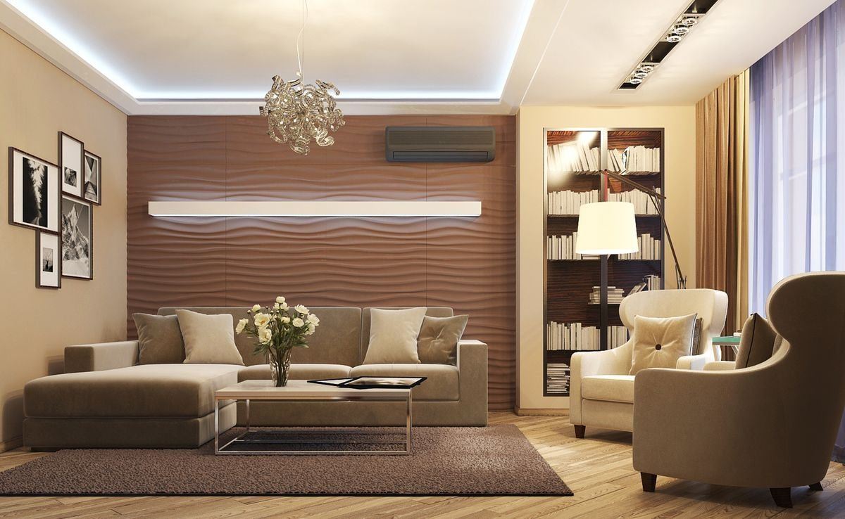 Дизайн гостиной в кофейно Молочном цвете бюджетный вариант