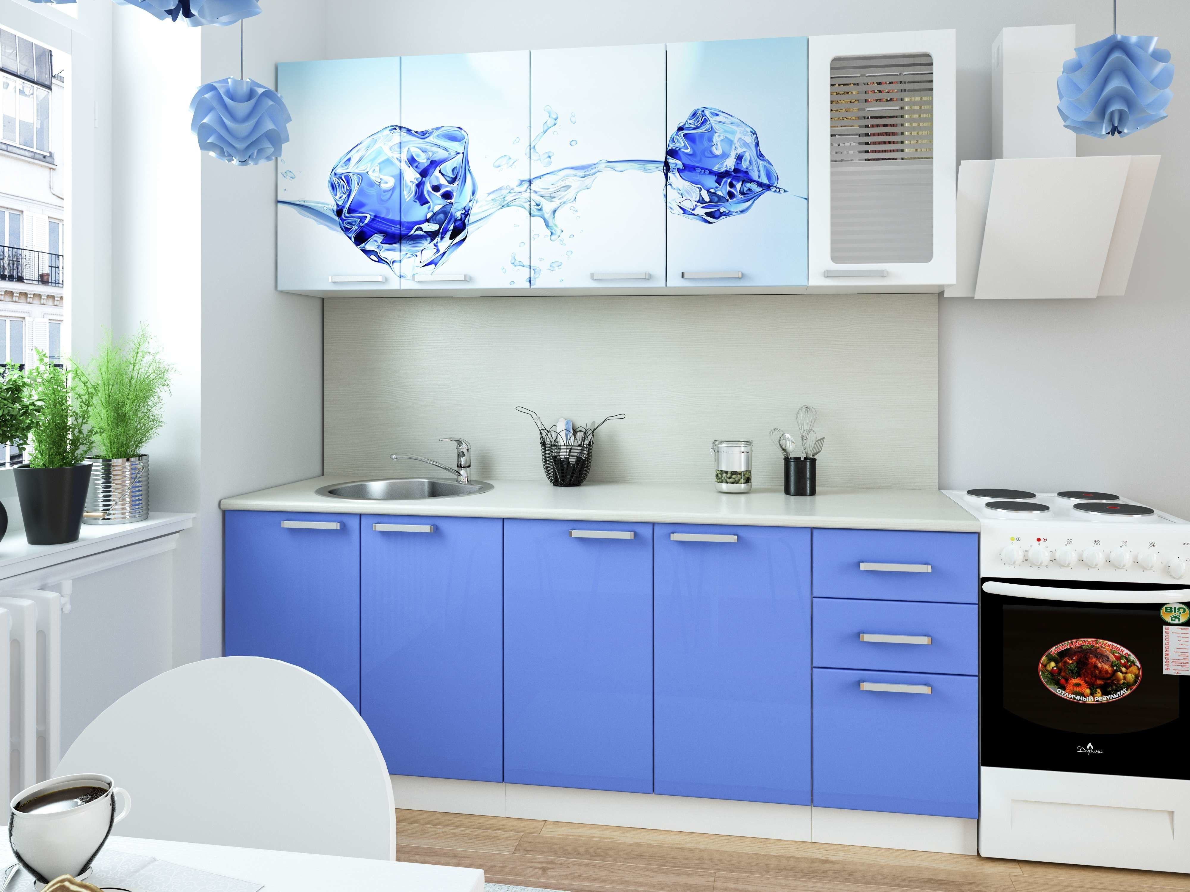 Кухни в белых синих цветах