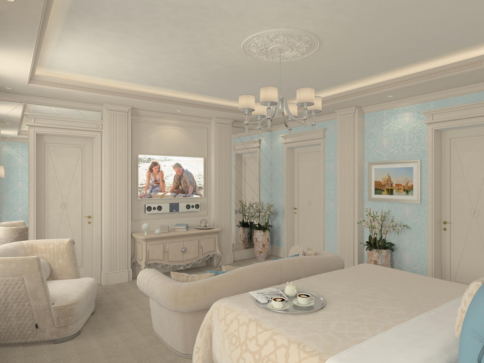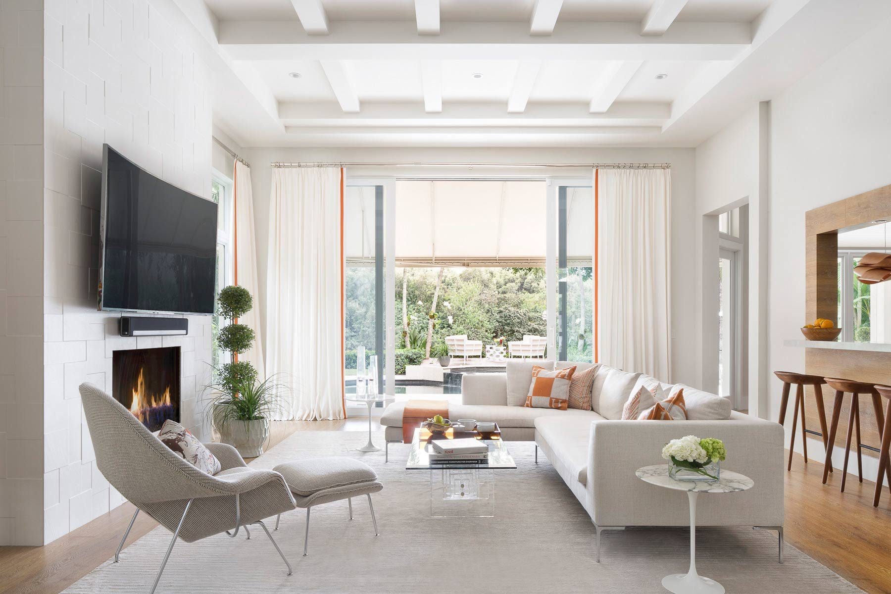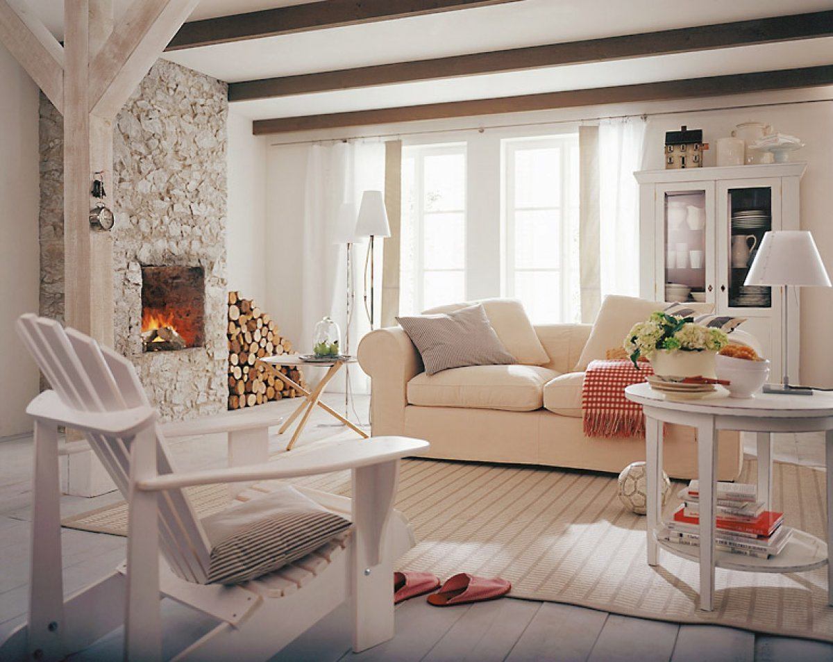 Гостиная в современном стиле в светлых тонах в загородном доме