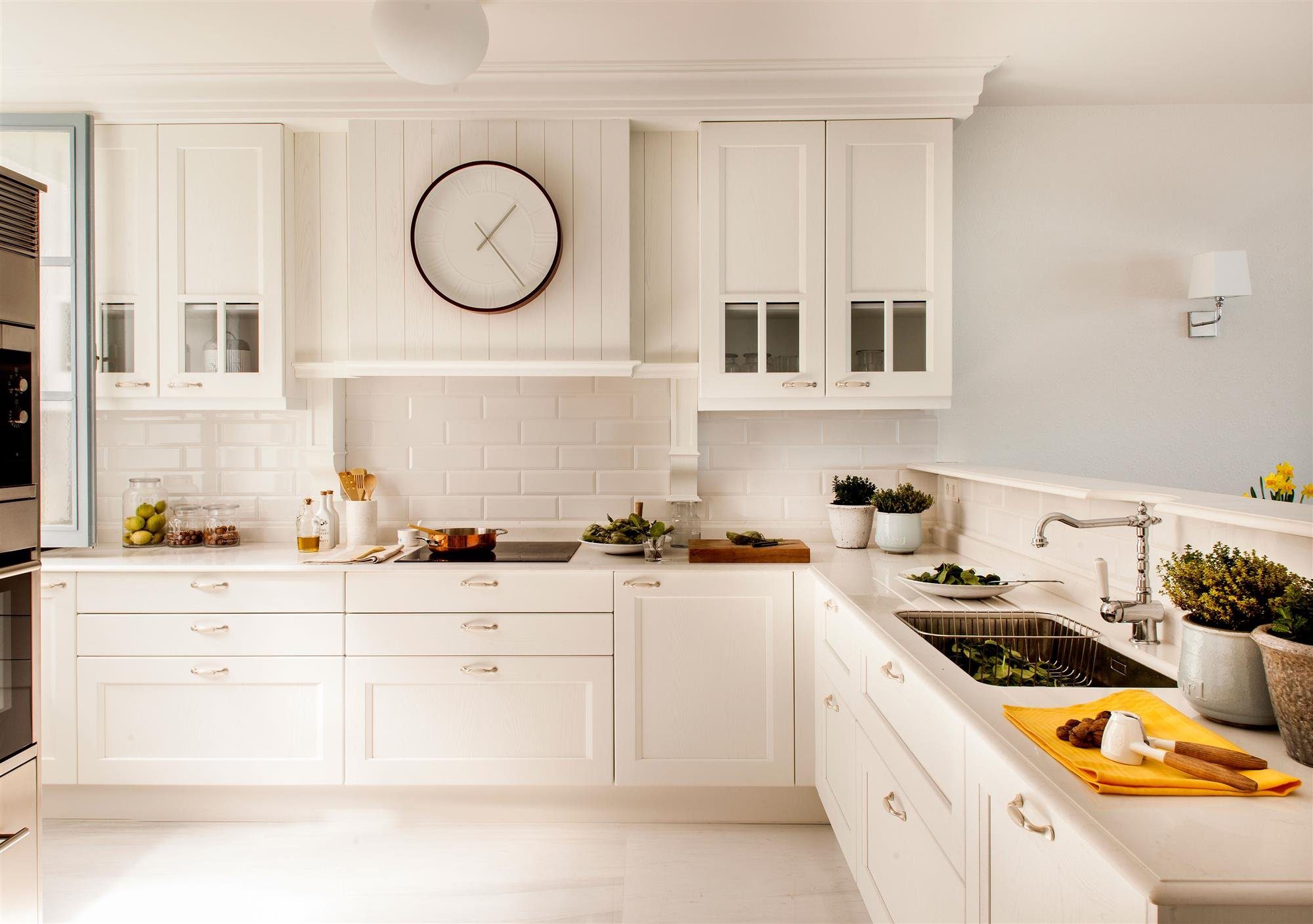 Белая деревянная кухня в интерьере
