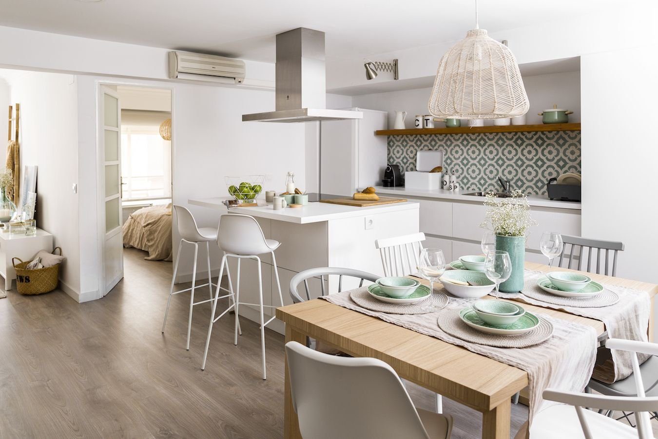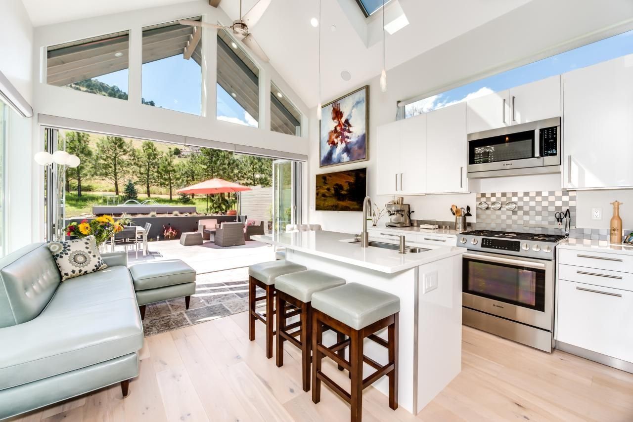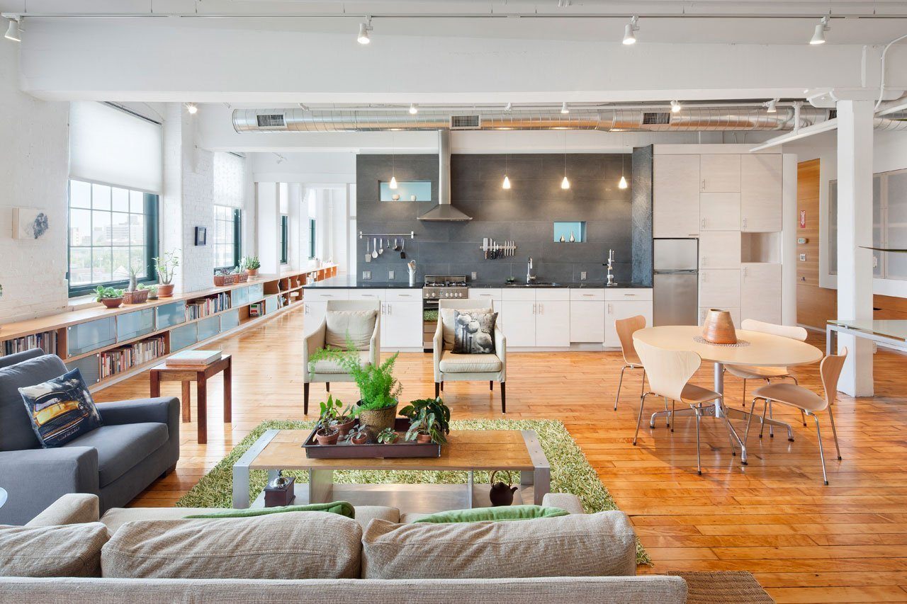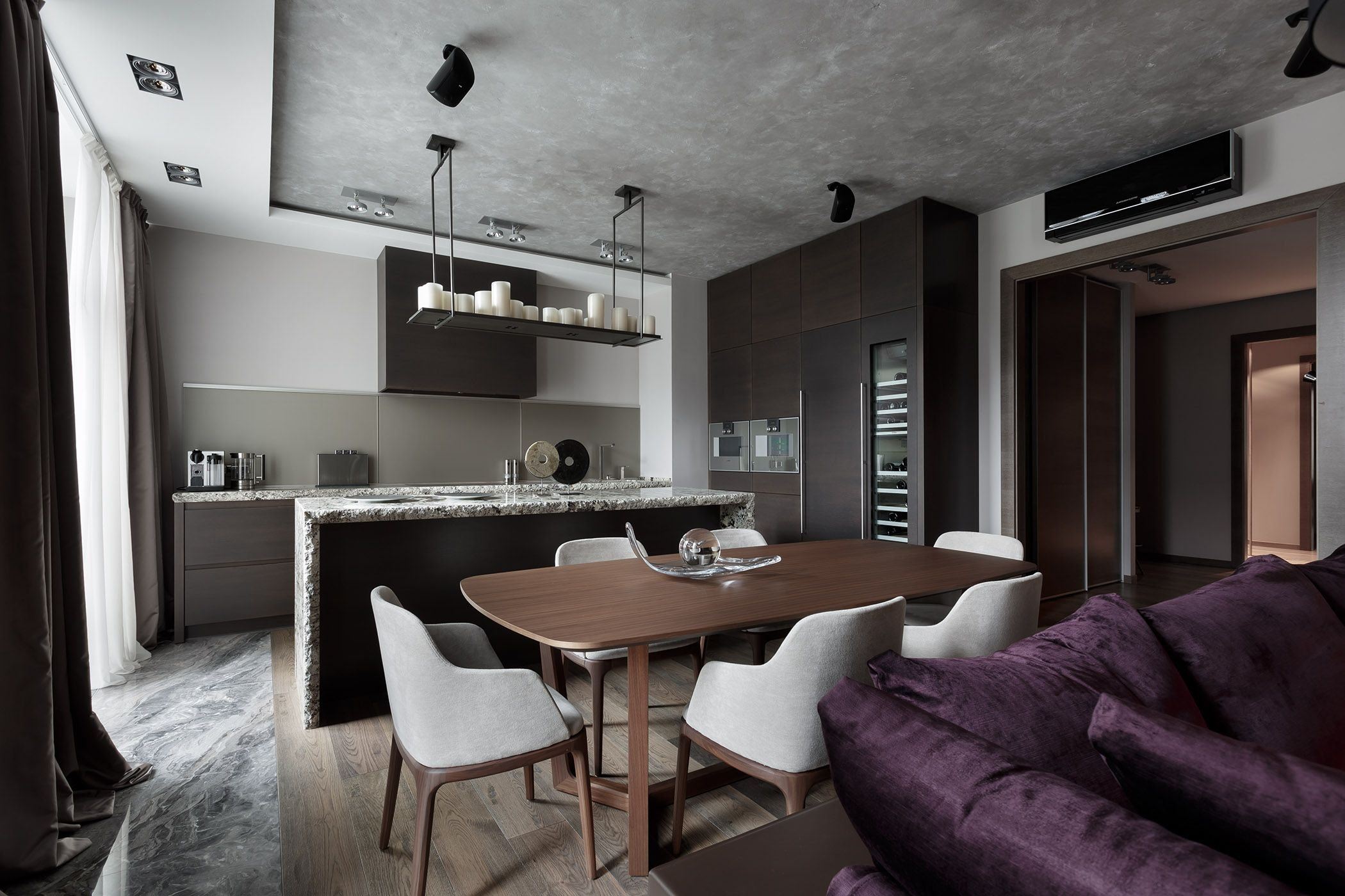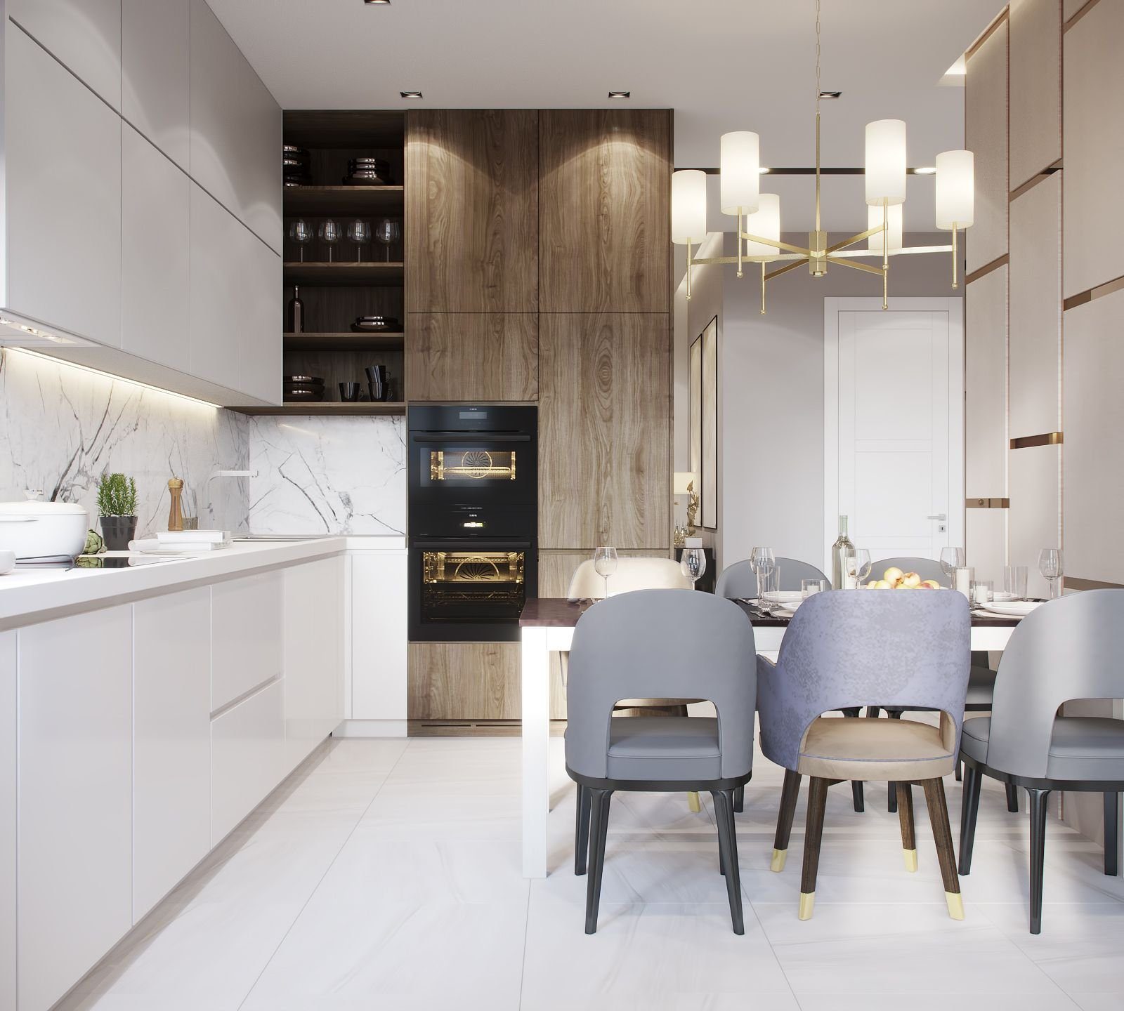 Дуб антик в интерьере кухни-гостиной частного дома Минимализм