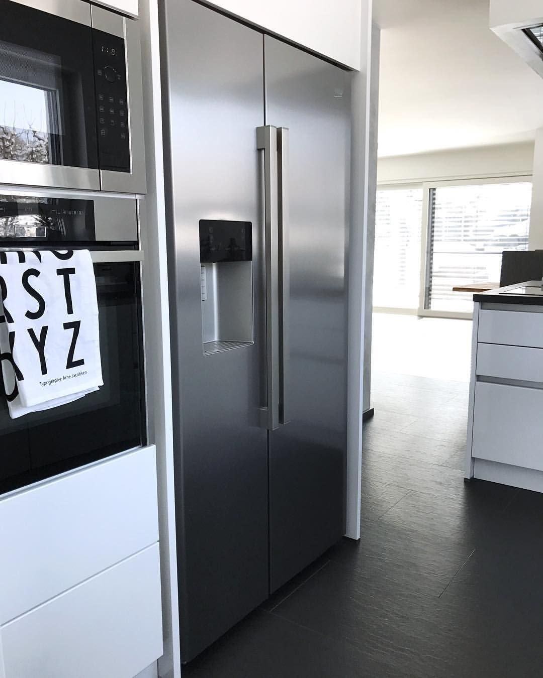 Холодильник Сайд-бай-Сайд в интерьере с кухней икеа