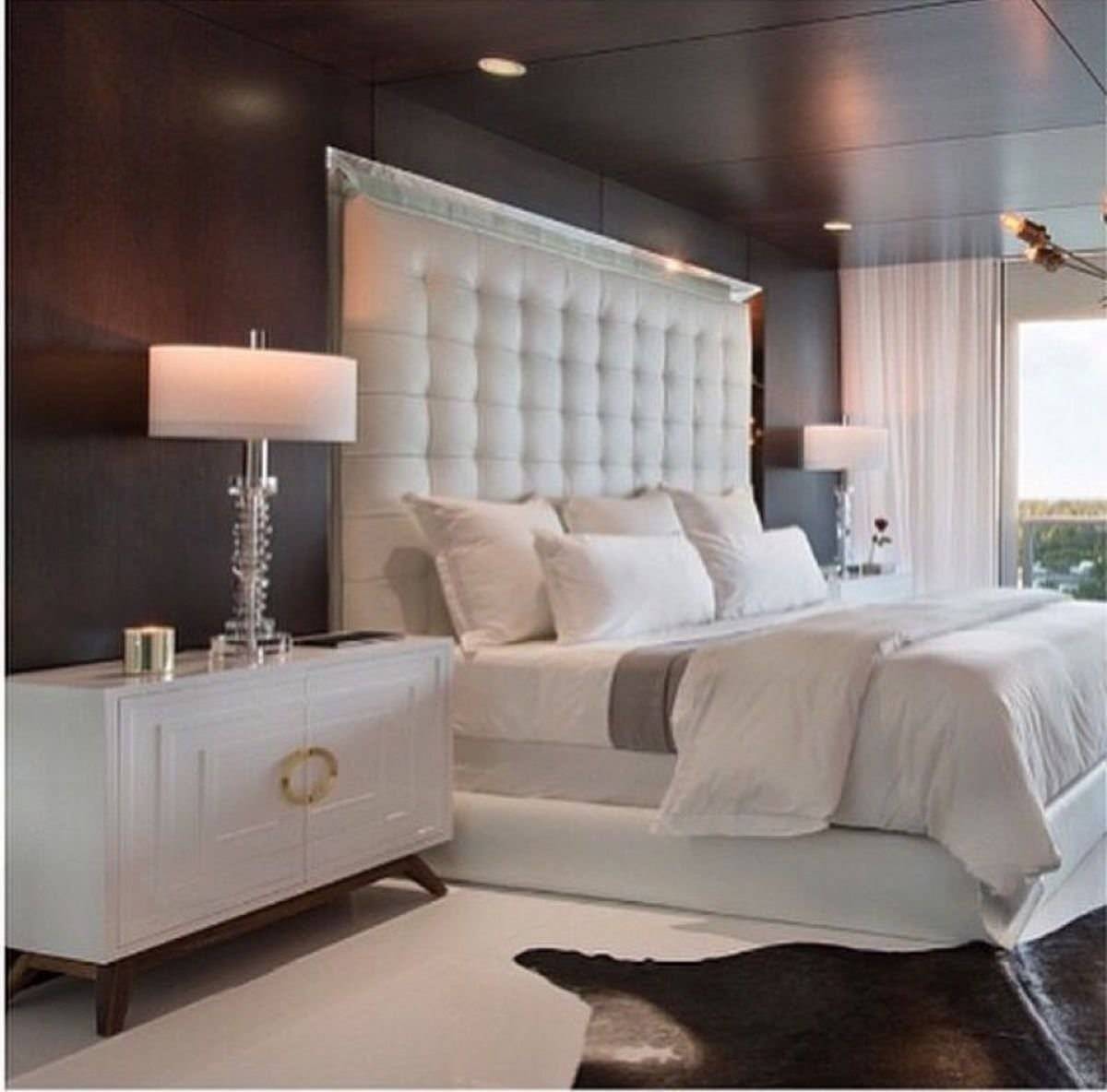 Белая спальня с черной мебелью