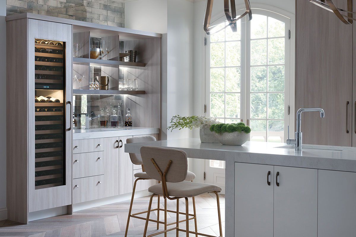 Кухни с винным шкафом на торце