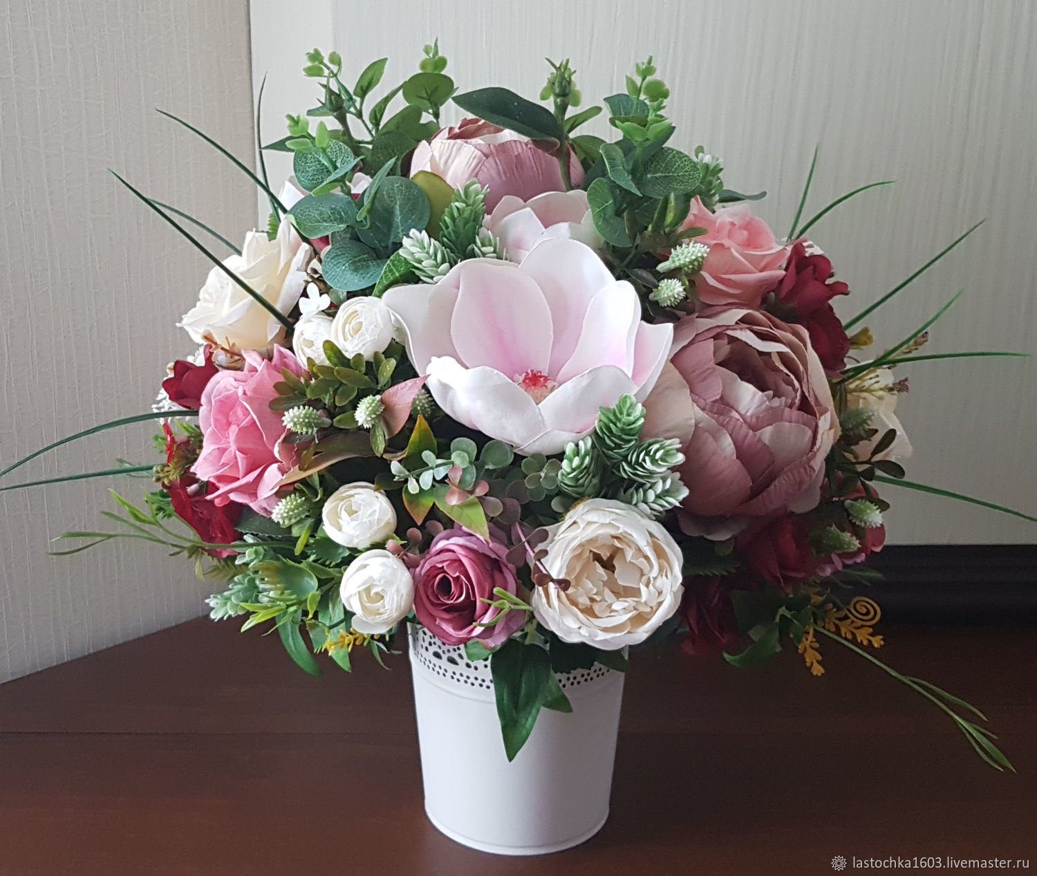 Букеты из искусственных пионов и камелий