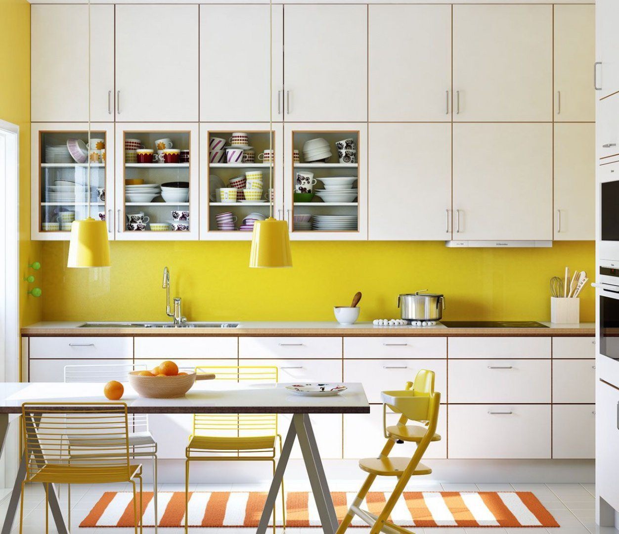 Белая кухня желтые стены