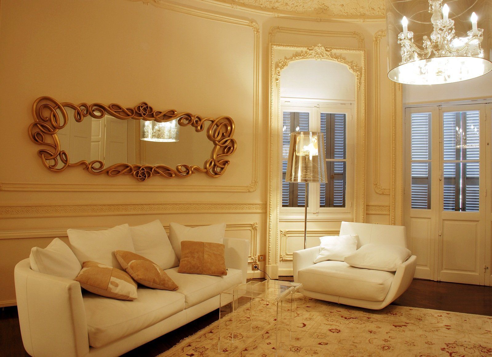 Зеркала над диванами в классических гостиных