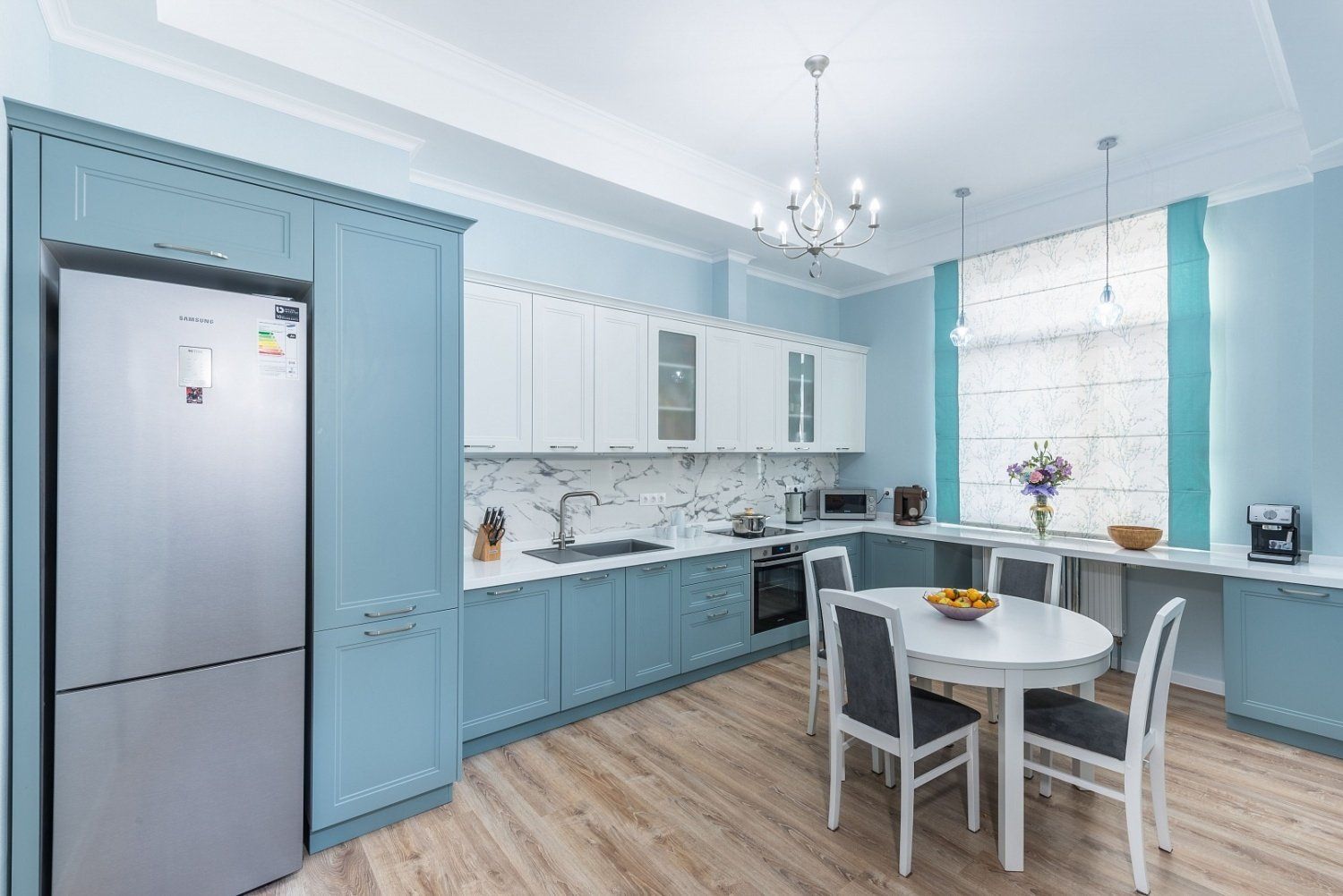 Кухня в светлых голубых тонах