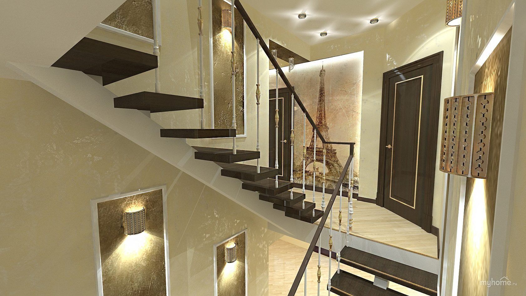 Обои в коридор с лестницей