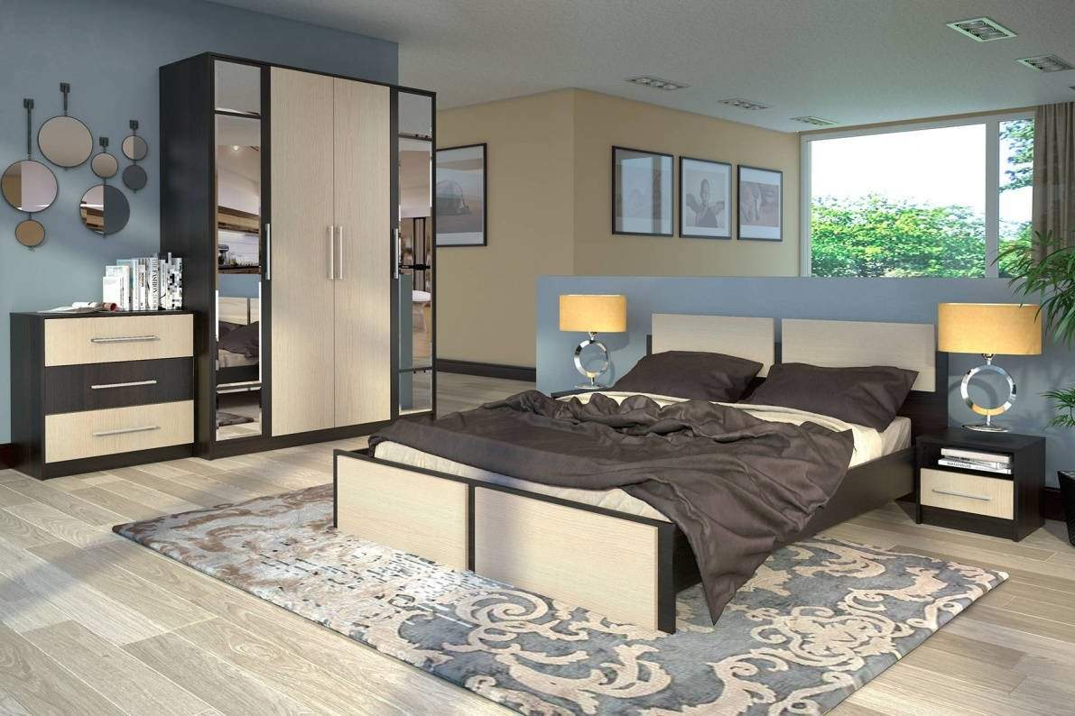 Интерьер спальни с мебелью цвета венге