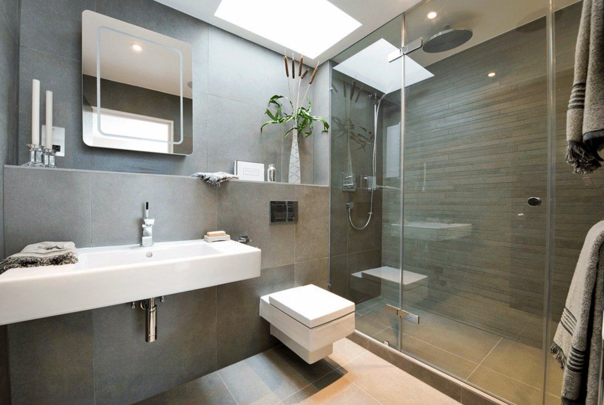Интерьер ванной комнаты в сером цвете