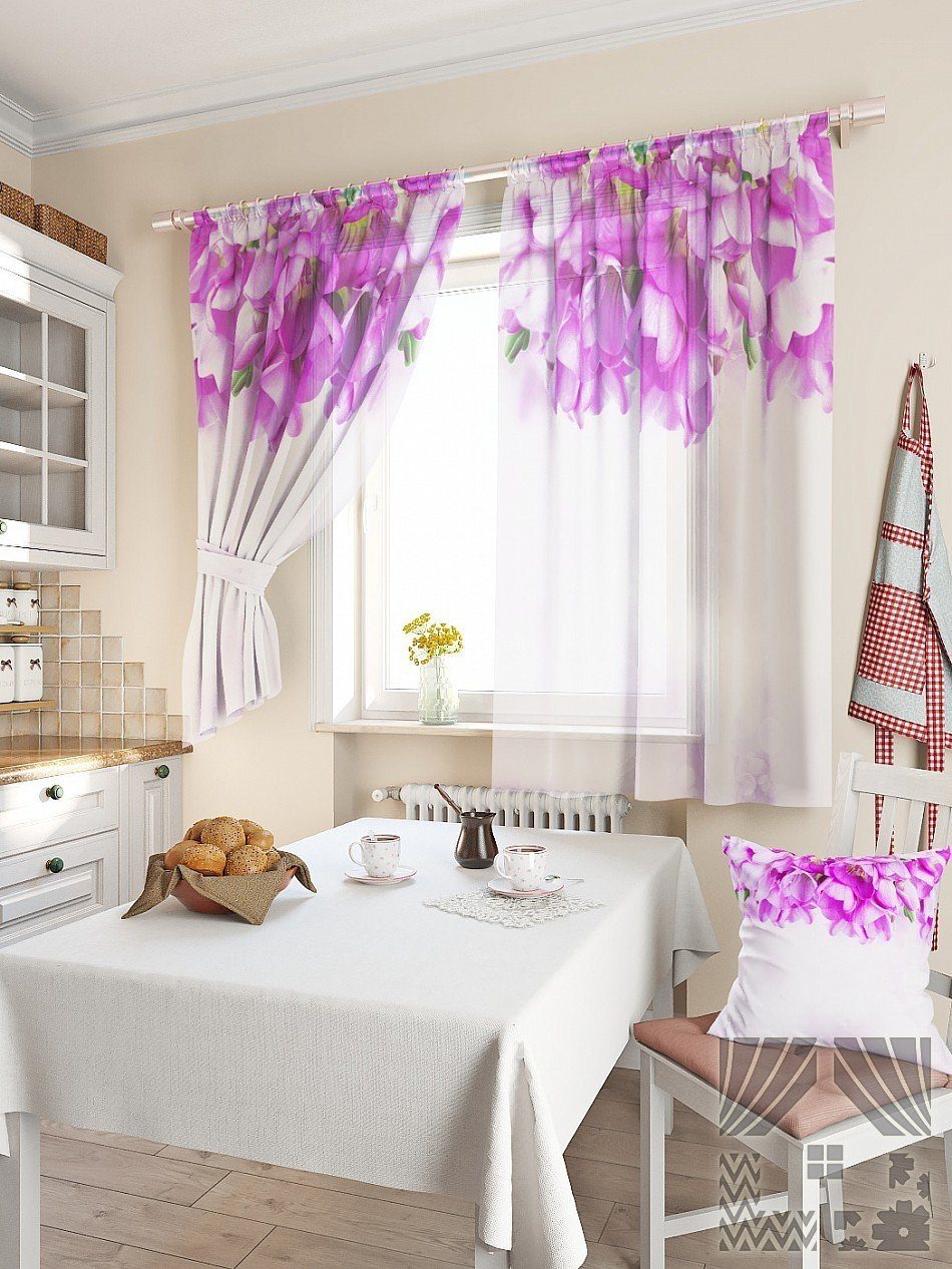 Тюль на сиреневую кухню