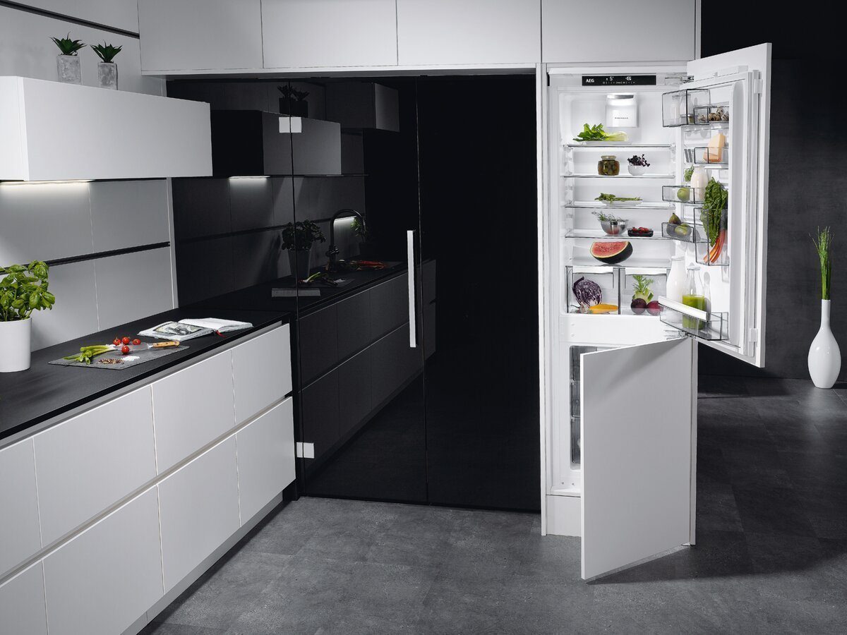 Черный холодильник в интерьере