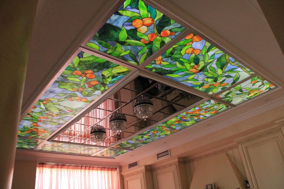 Потолок кессоны с витражами в классическом стиле с подсветкой