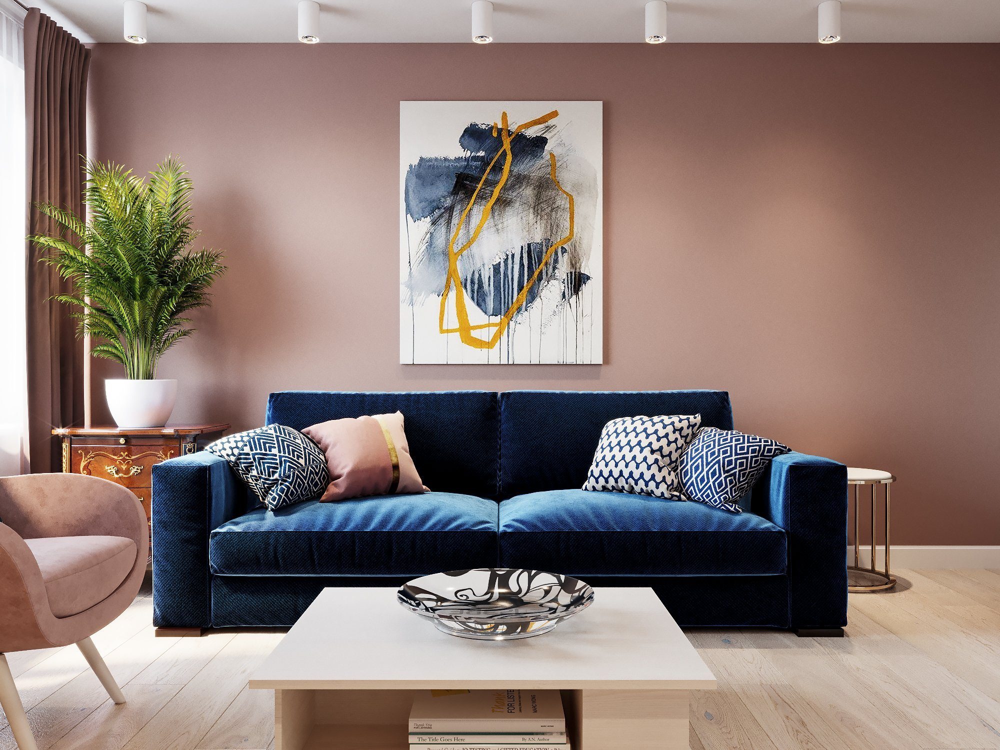 Интерьер с синей стеной