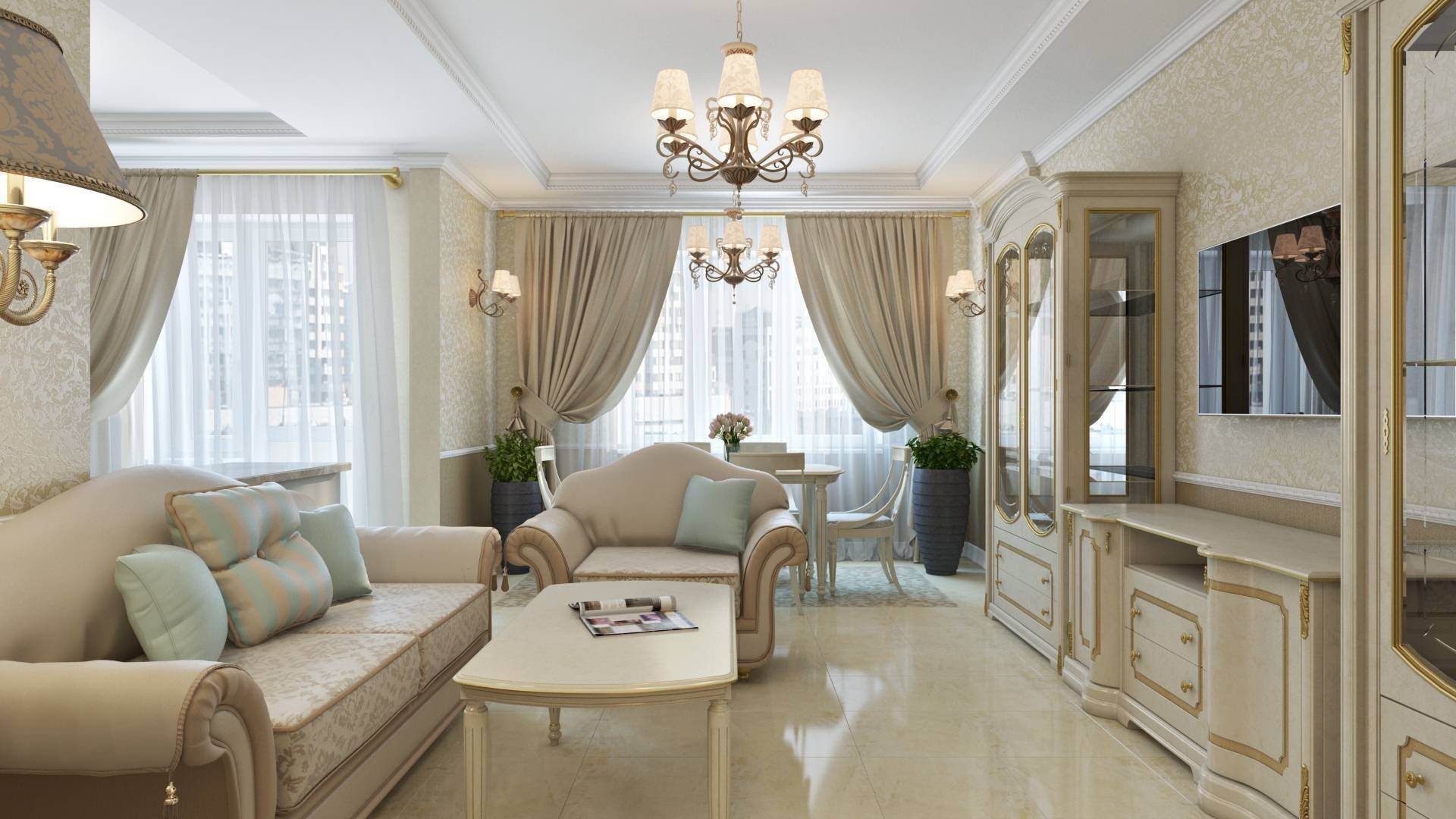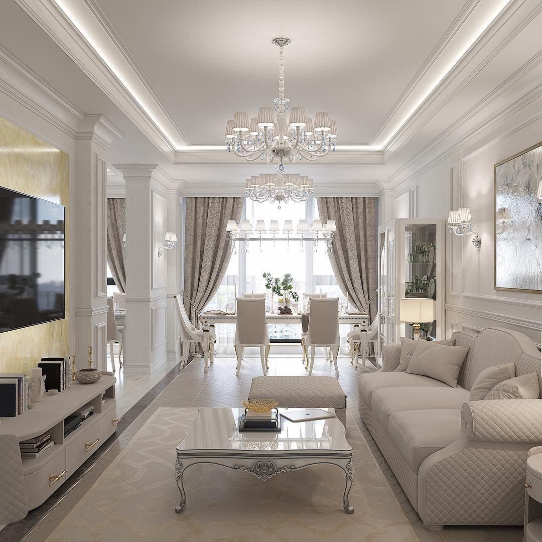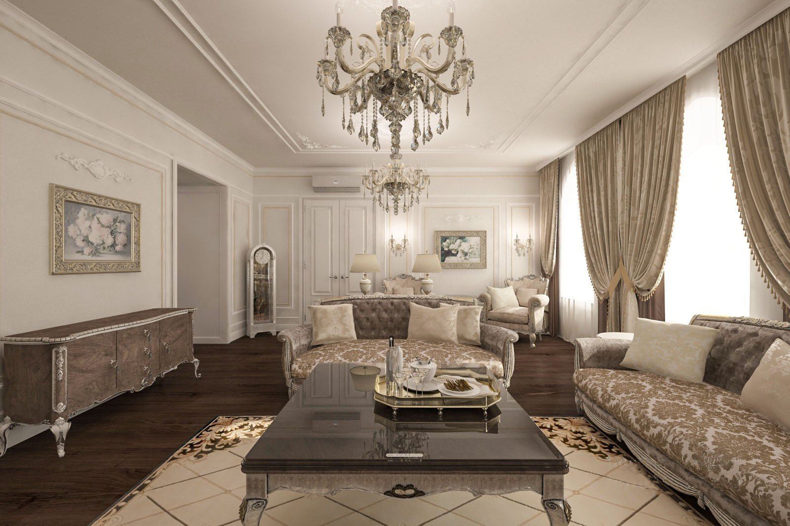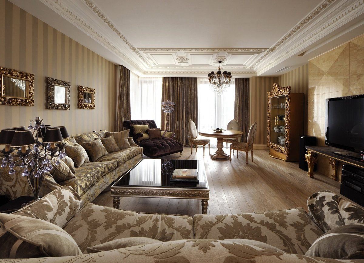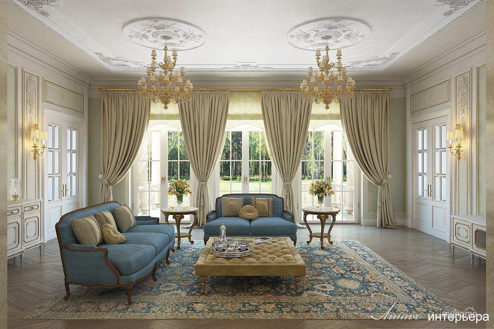 Линкруста в интерьере гостиной в стиле Неоклассика
